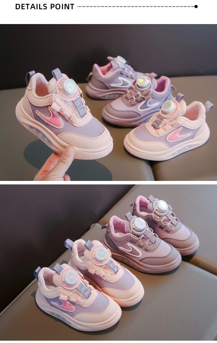 어린이 운동화 새로운 2024 봄과 가을 편안한 회전 버튼 패션 소녀 운동화 캐주얼 신발 어린이 신발스토어 가기