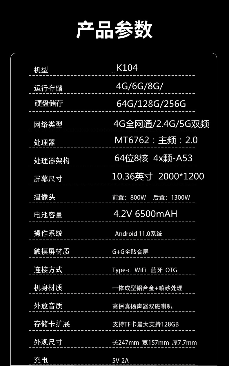 K104 국경 새로운 10.36 인치 인셀 풀 핏 통합 화면 안드로이드 태블릿 컴퓨터 8 코어 4G 풀 네트워크 5스토어 가기