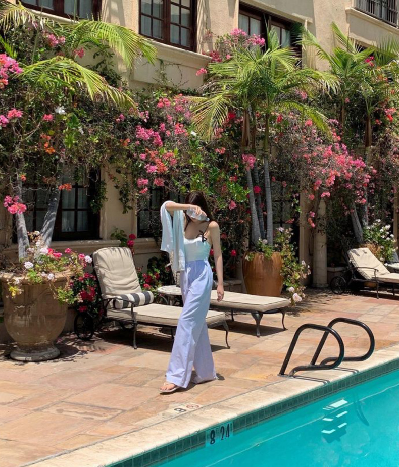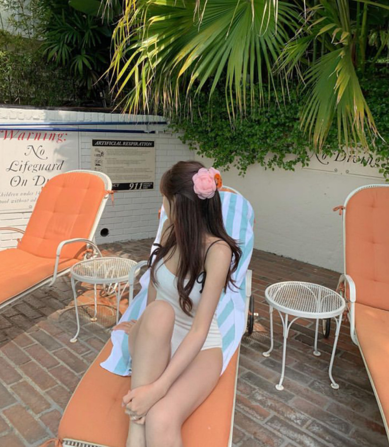 한국 스타일 2024 새로운 간단한 원피스 단색 슬림 슬링 백리스 온천 휴가 수영복