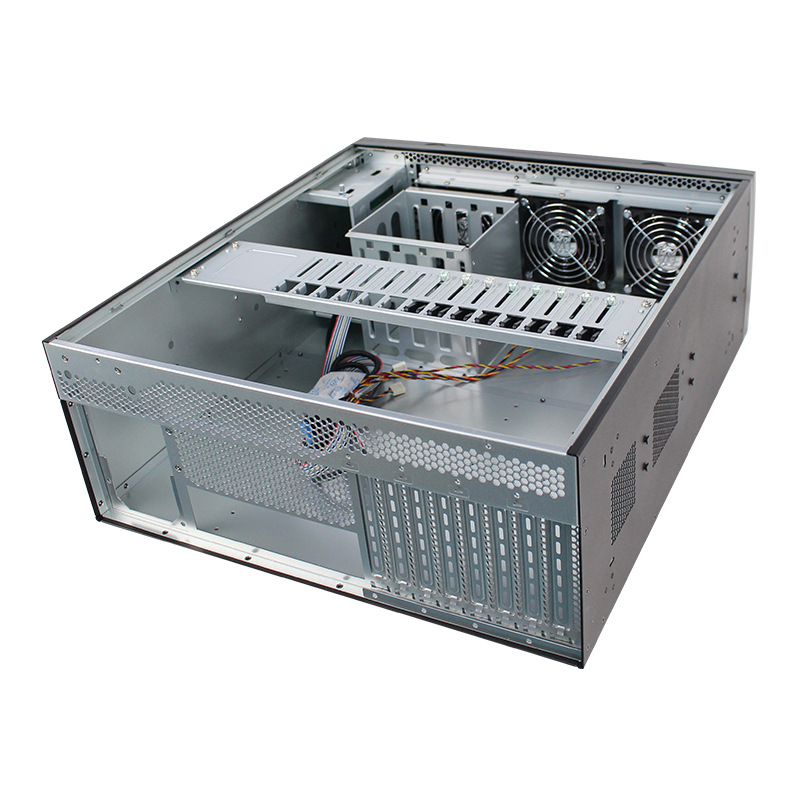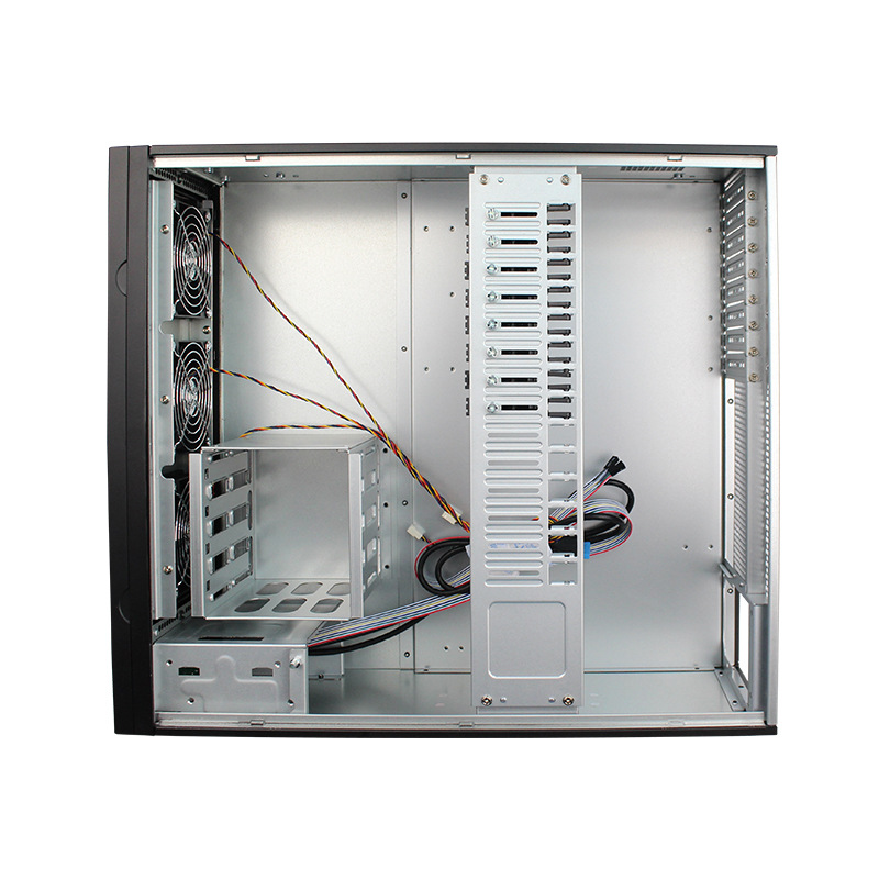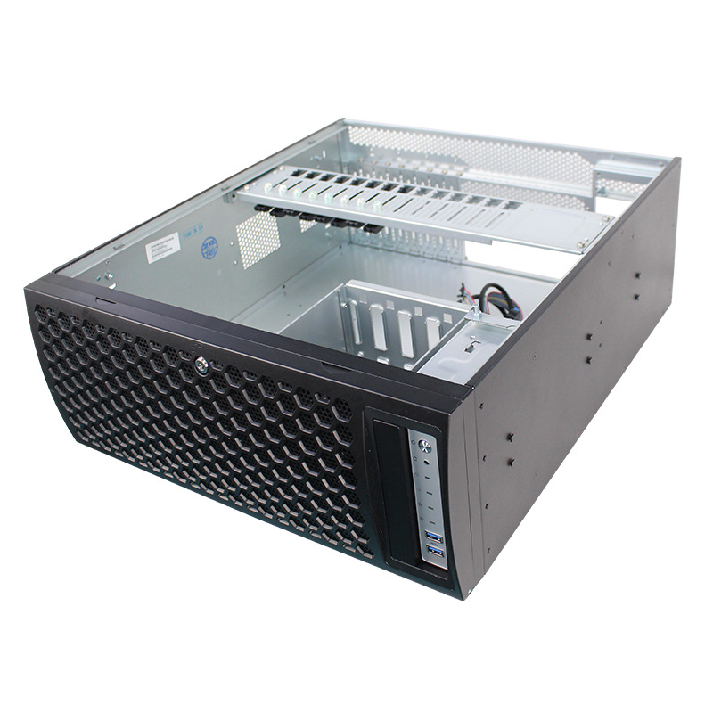 拓普龙中塔服务器机箱,支持内置4个3.5英寸硬盘位,支持12"*9.6"及以下尺寸的主板,兼容ATX电源和CRPS冗余电源,支持8个PCIE全高扩展槽位,标配3个9025B散热风扇,前门板采用隐藏式进风孔,具有良好的散热风道,机箱支持机架式安装和立式安装,广泛应用于云存储、云计算、大数据、安防监控等领域。