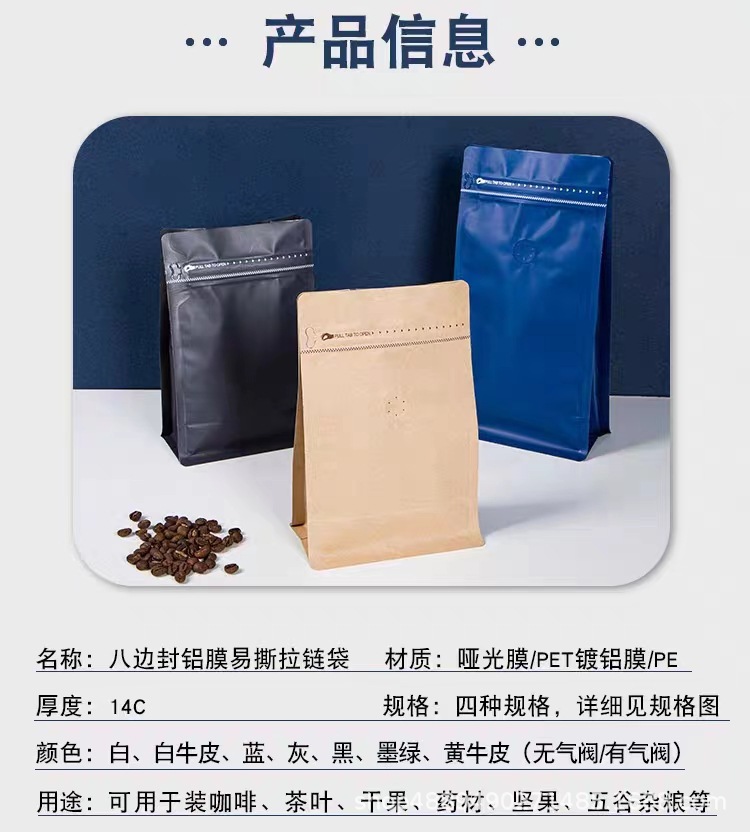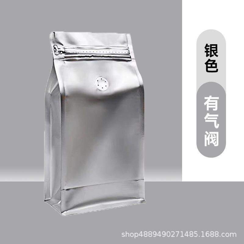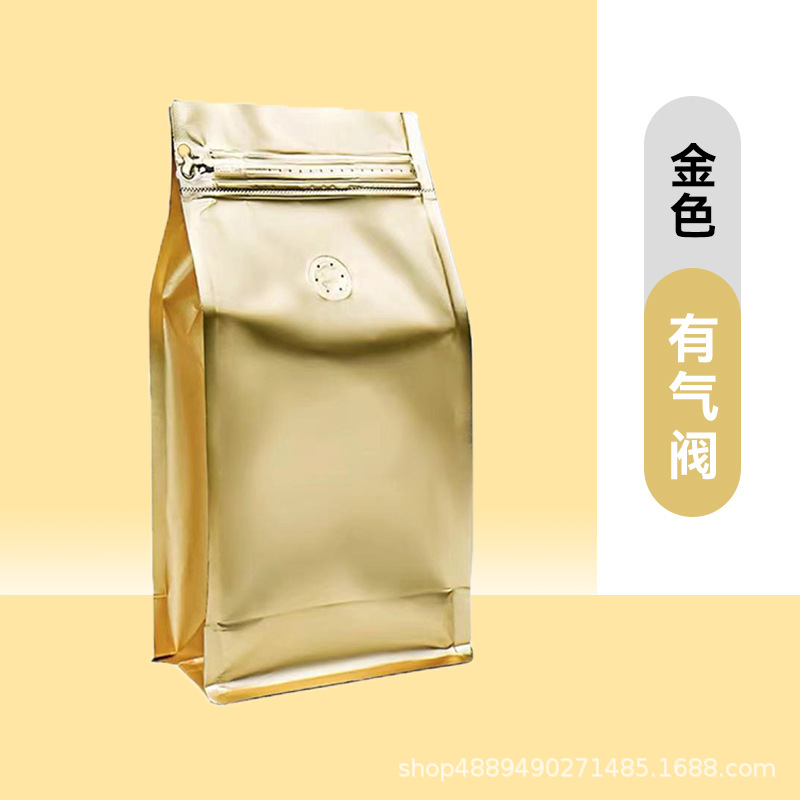 알루미늄 호일 단방향 밸브 8면 밀봉 세로형 커피백 고양이/강아지 사료 차백 밀봉 측면 지퍼 식품 포장백