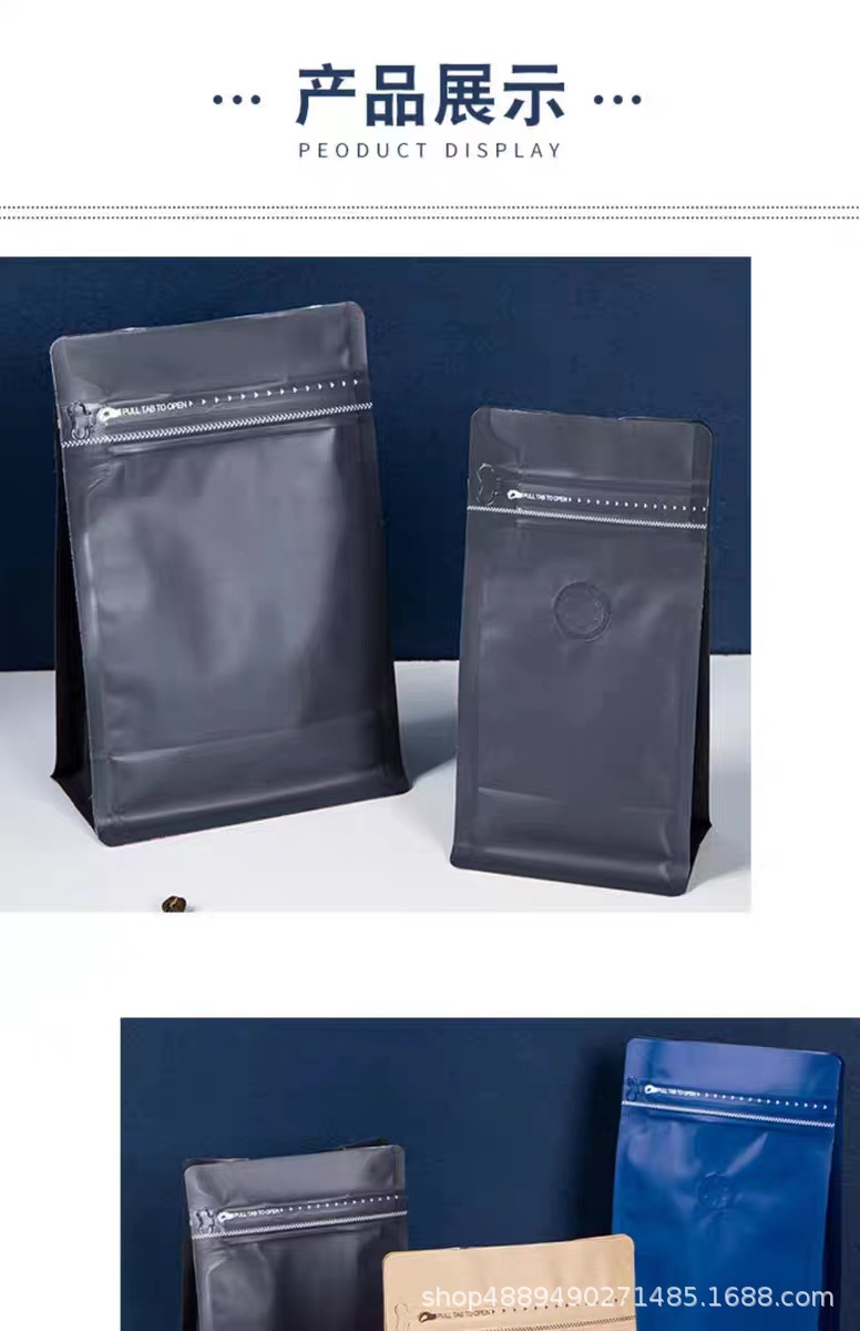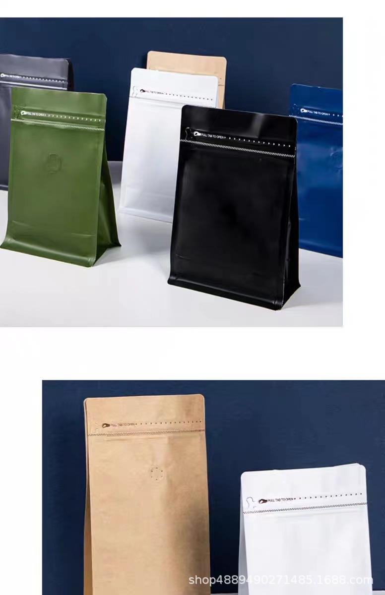 알루미늄 호일 단방향 밸브 8면 밀봉 세로형 커피백 고양이/강아지 사료 차백 밀봉 측면 지퍼 식품 포장백스토어 가기