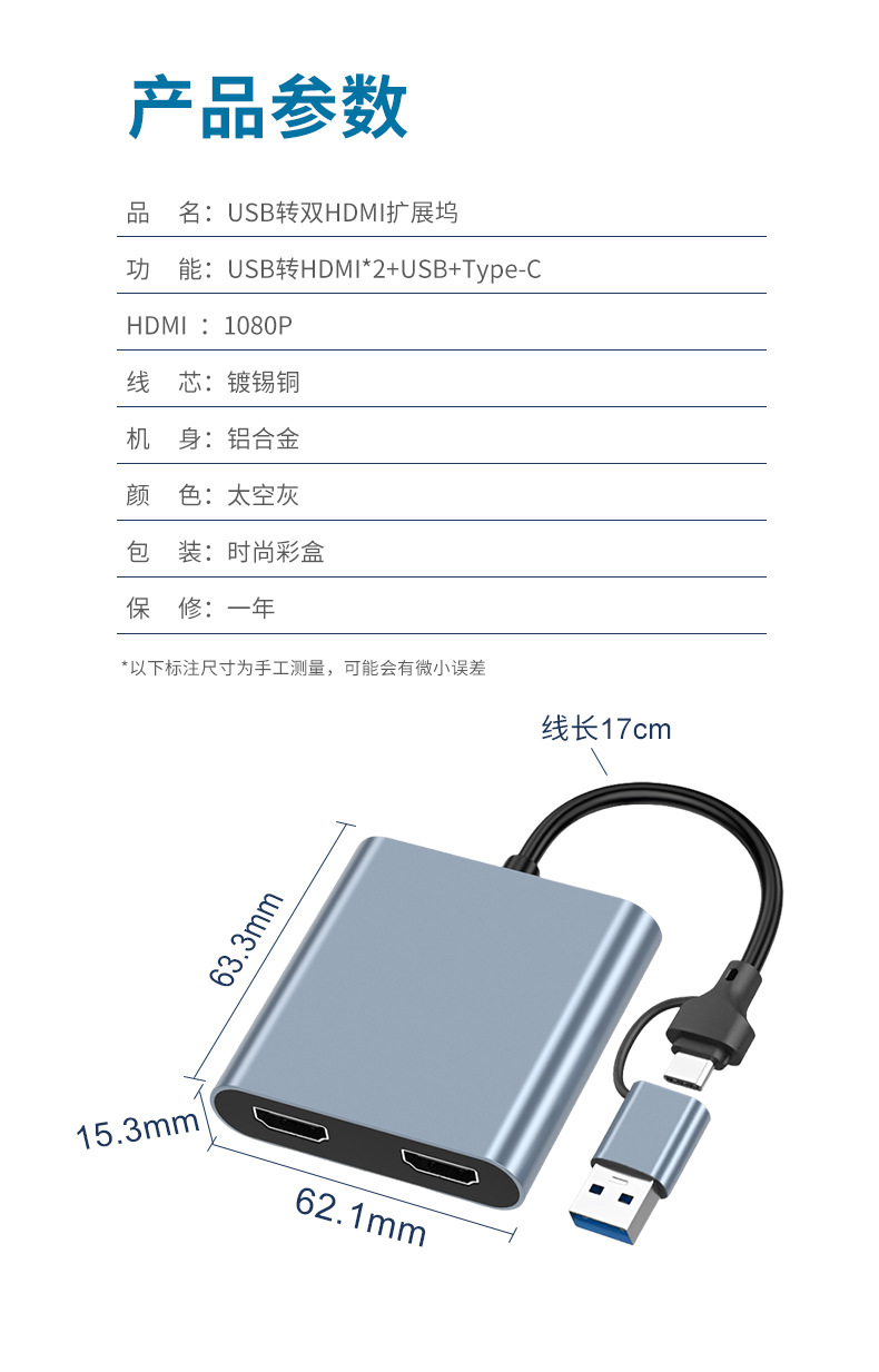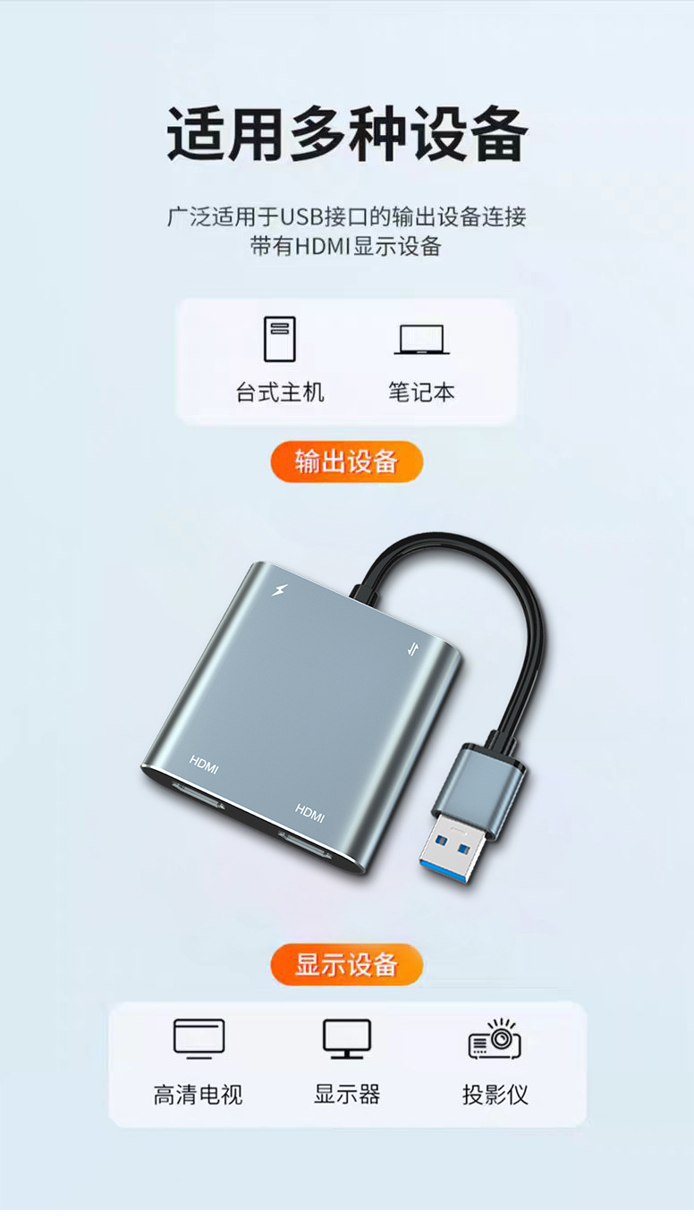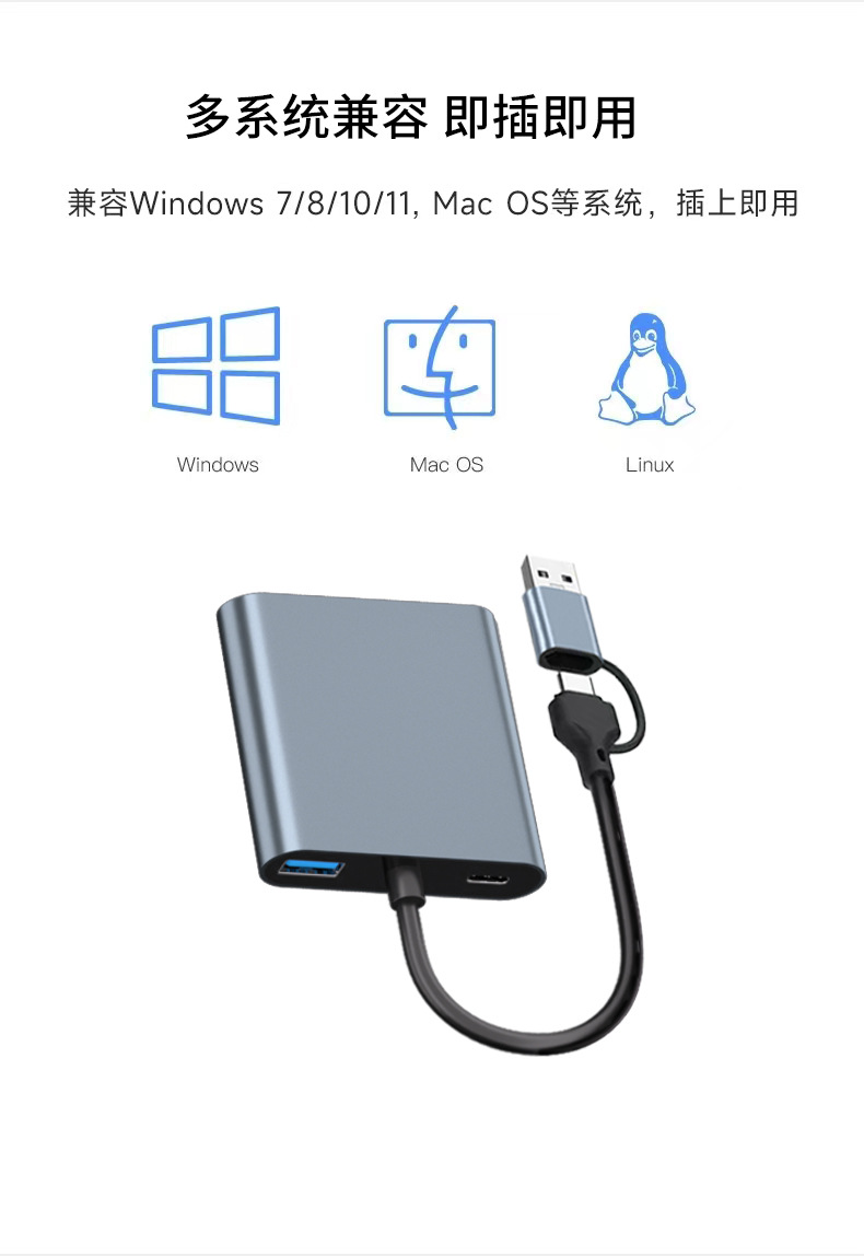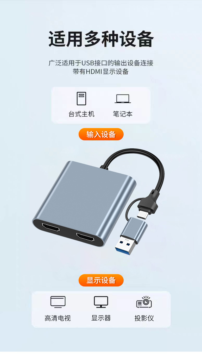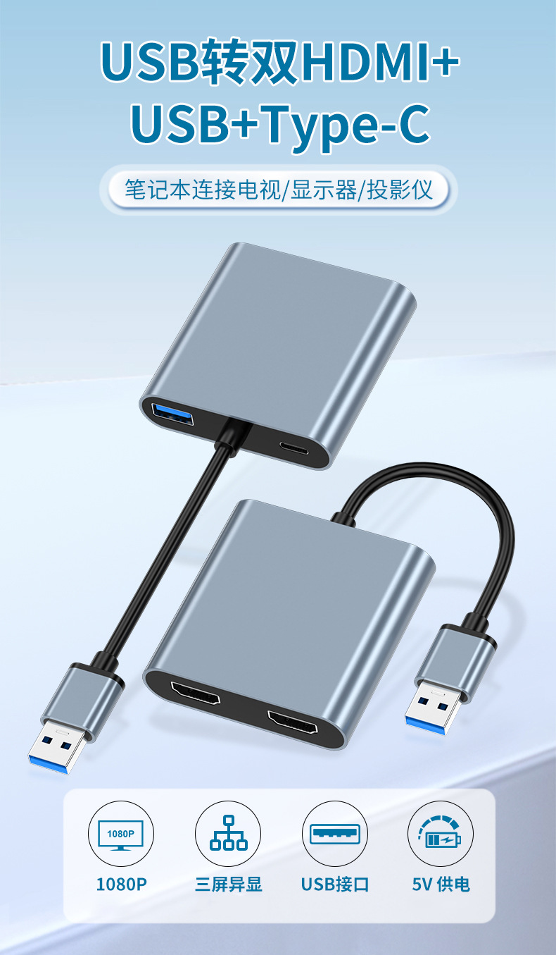 유형-c 어댑터 USB3.0 변환 듀얼 HDMI 3 화면 다른 디스플레이 화면 허브 M1/M2 그래픽 카드스토어 가기