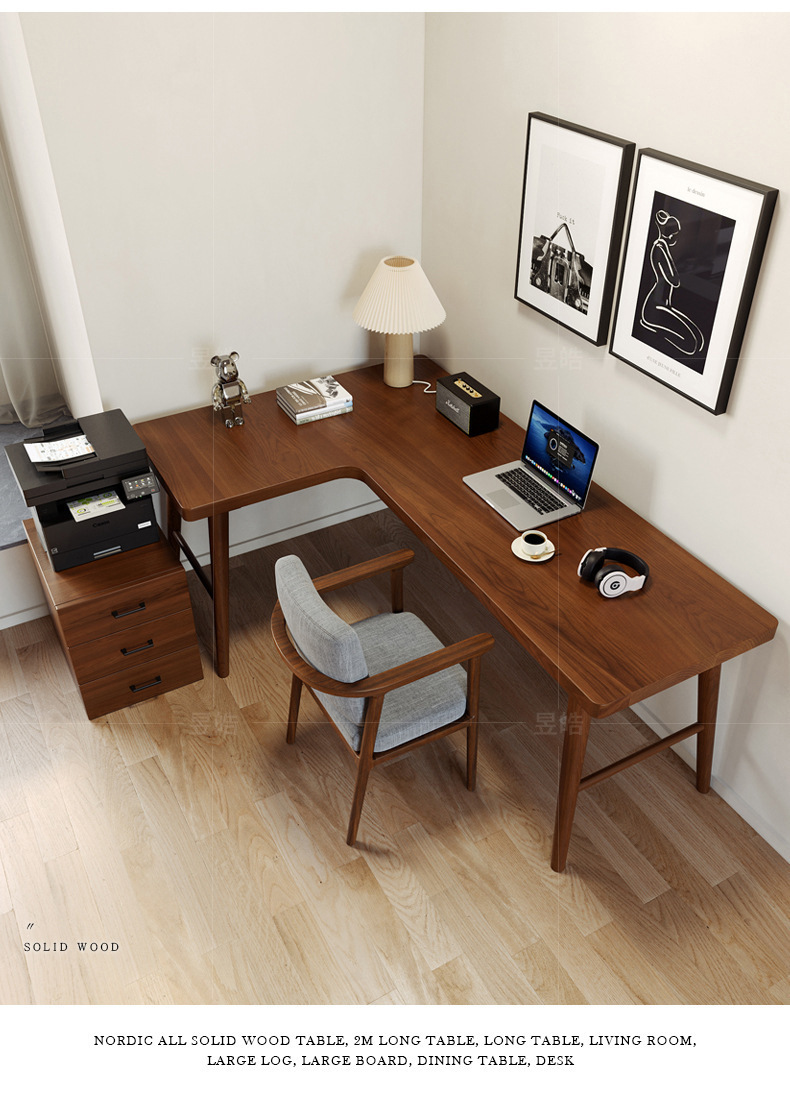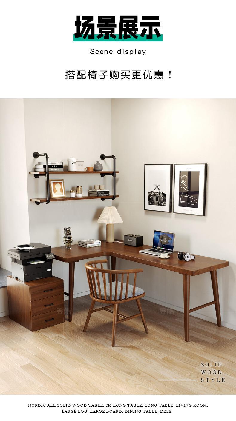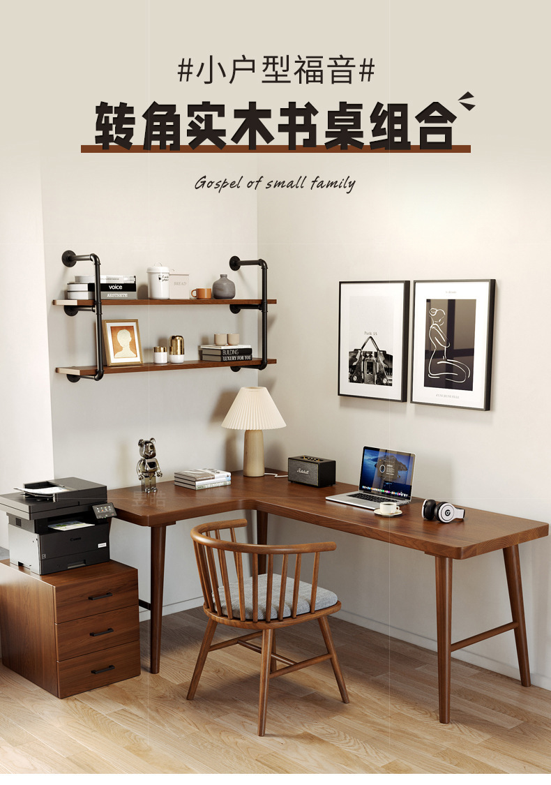 북유럽 단단한 나무 책상 작은 아파트 긴 코너 쓰기 워크 벤치 연구 간단한 벽 더블 컴퓨터 책상