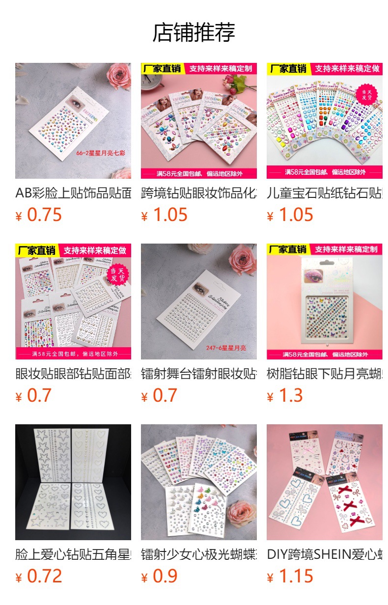 국경 간 어린이 보석 스티커 크리스탈 보상 페이스트 장식 DIY 라운드 다이아몬드 별이 빛나는 다이아몬드 아이 장식 스티커스토어 가기
