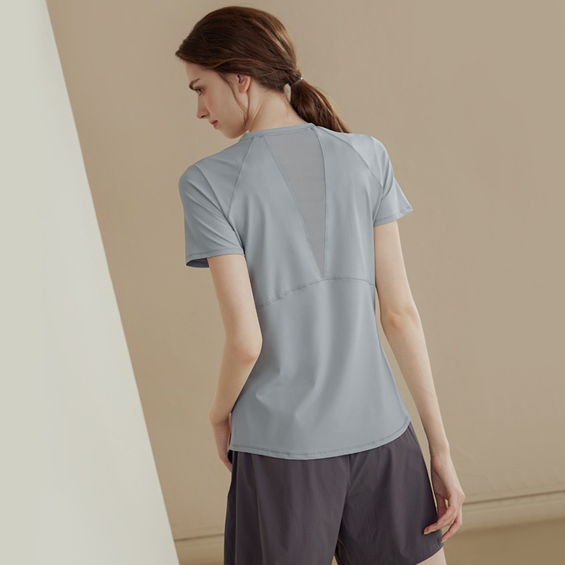 메쉬 스티치 요가복 여성용 여름 속건성 스포츠 탑 반팔 티셔츠 슬림핏 러닝 트레이닝 여름 티셔츠스토어 가기