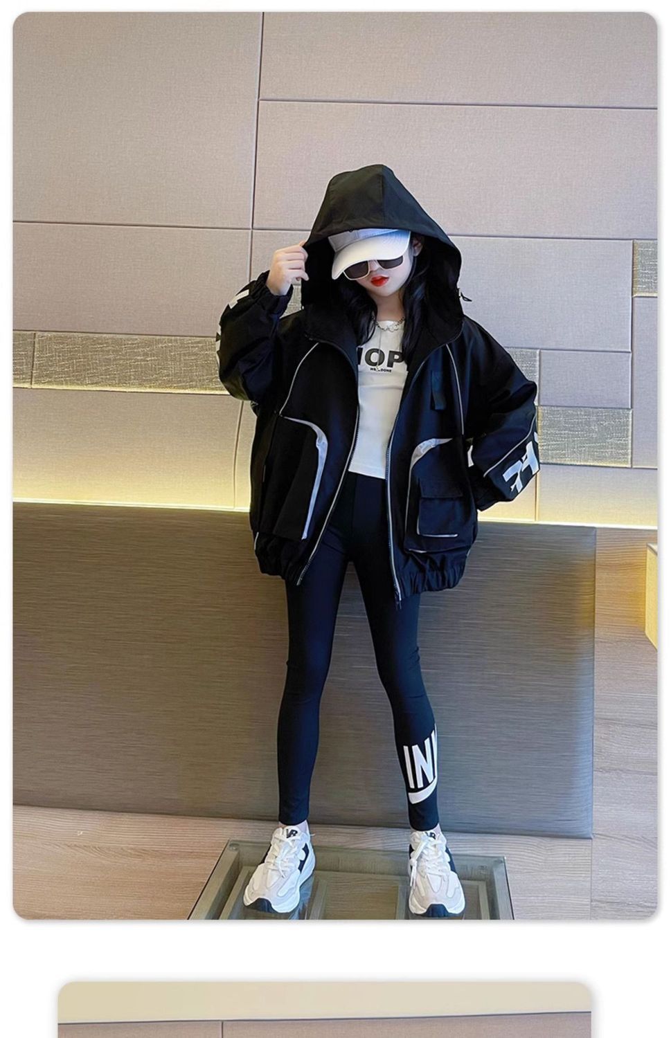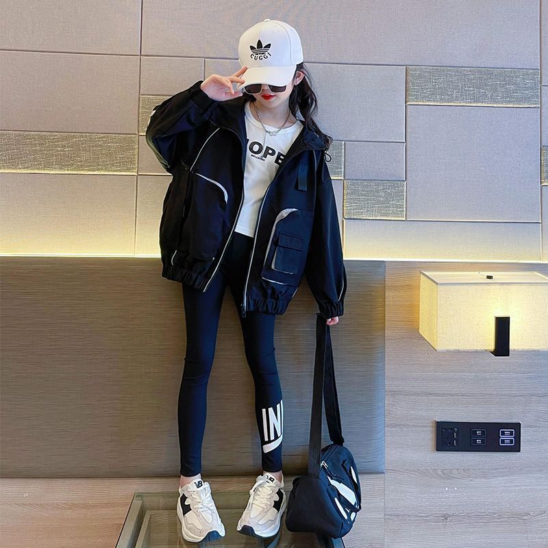 트렌디 한 소녀 코트 봄과 가을 2024 새로운 어린이 소녀의 중간 및 큰 어린이 서양식 재킷 유행 올 매칭스토어 가기