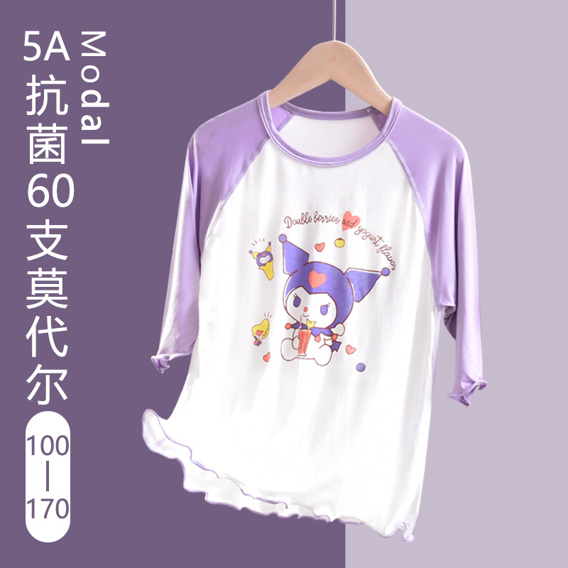 어린이 홈 착용 모달 3/4 소매 최고 여름 소녀 학생 소녀 에어컨 옷 아기 봄과 가을 잠옷스토어 가기