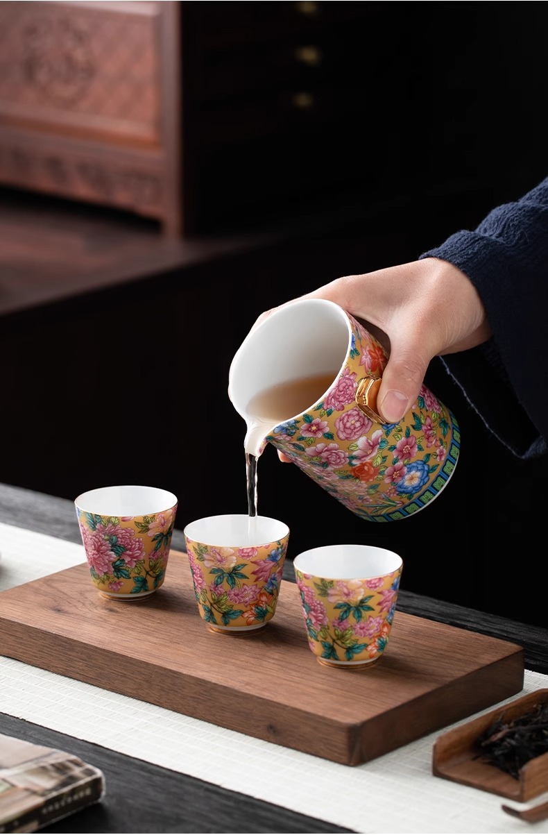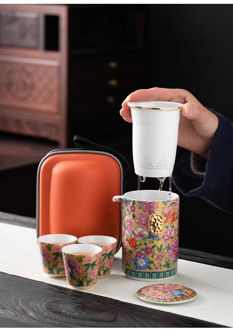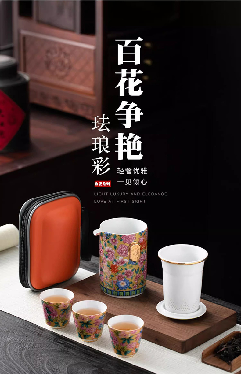 여행 차 세트 세트 휴대용 야외 간단한 주전자 찻잔 에나멜 컬러 내셔널 타이드 캠핑 익스프레스 컵 홈