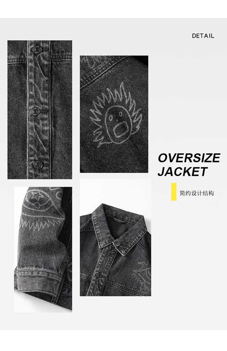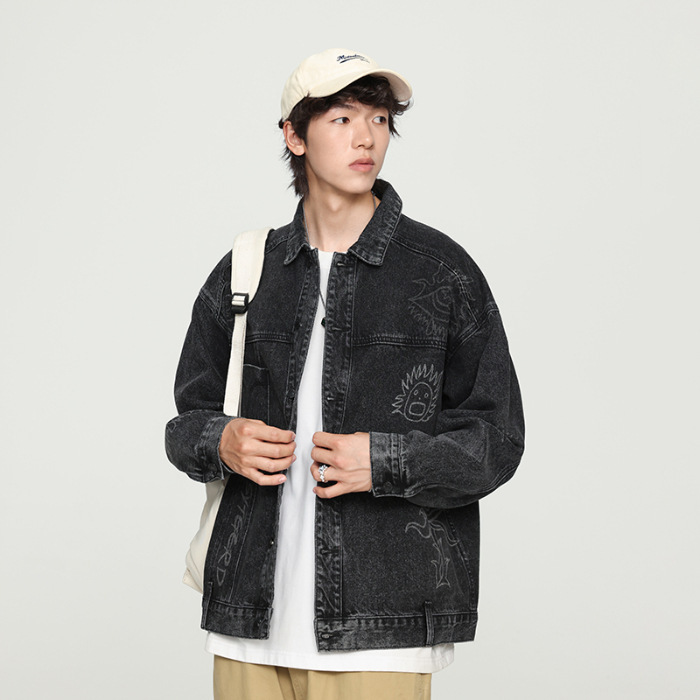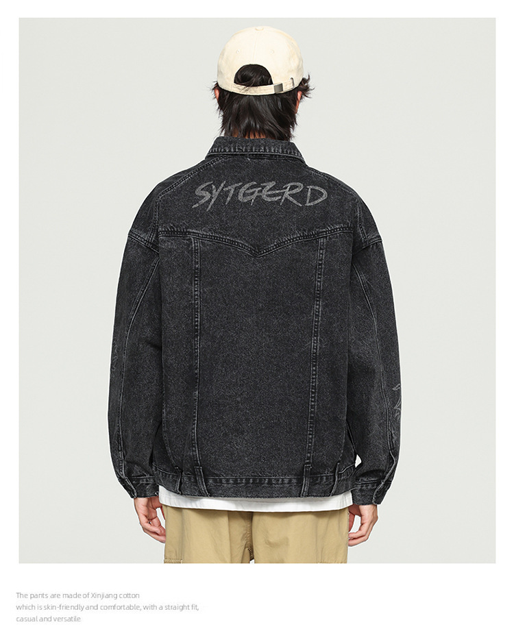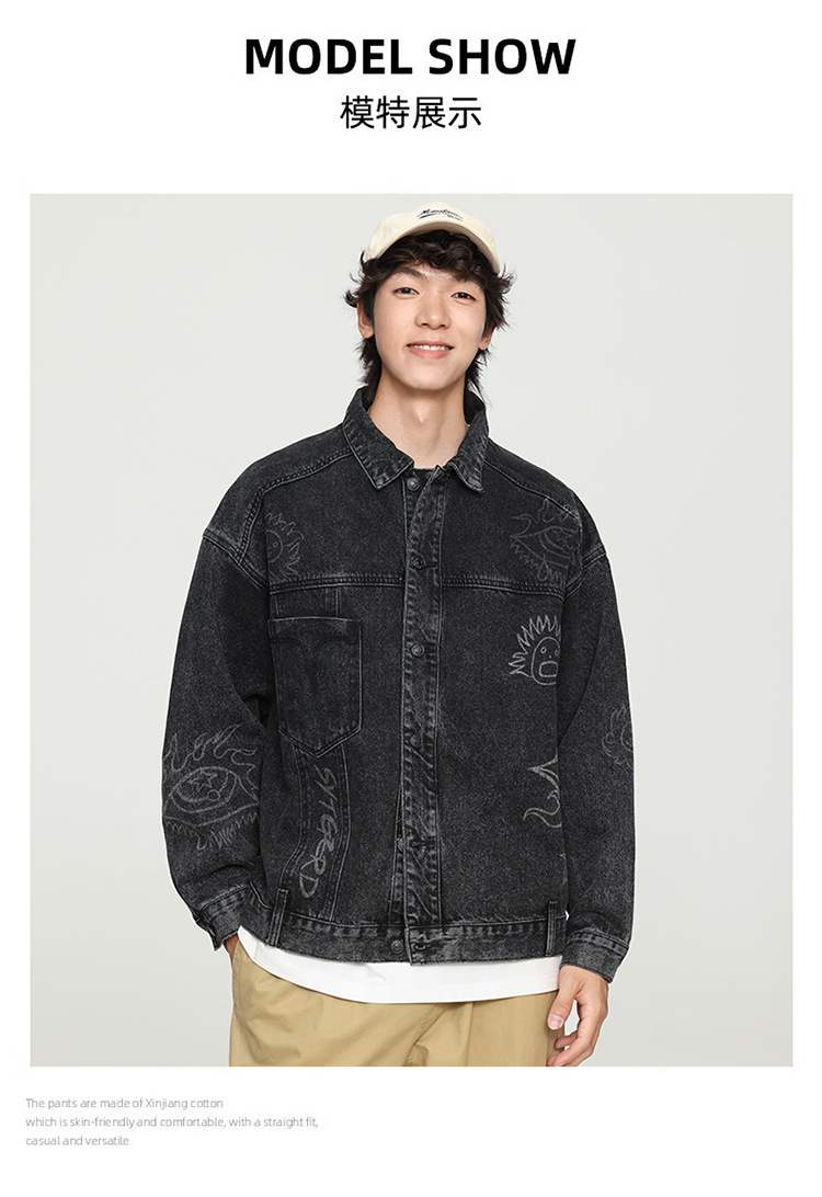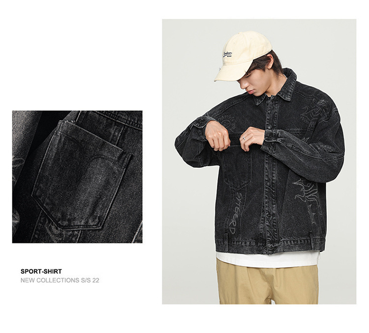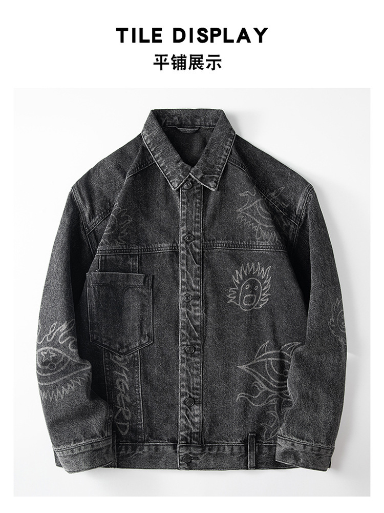 유럽 역 봄 새로운 미국 하이 스트리트 작업복 재킷 고급 빈티지 프린트 패션 브랜드 데님 코트 남성