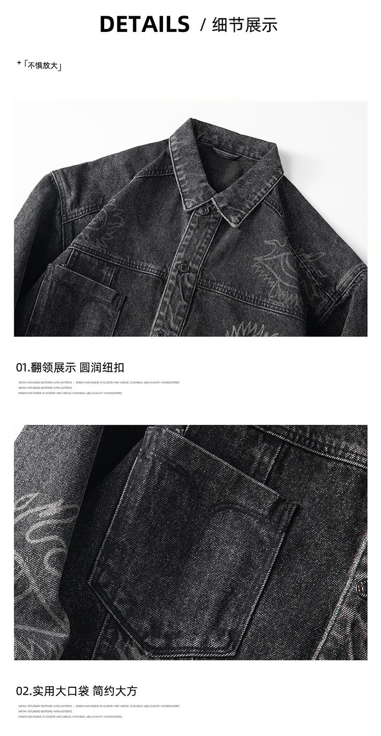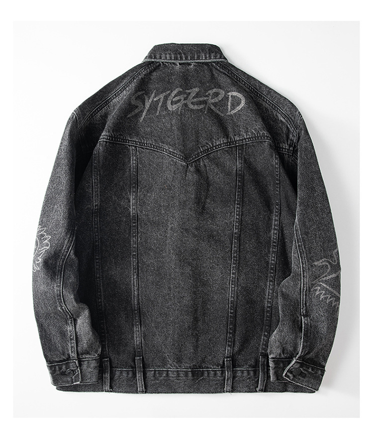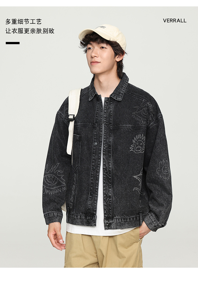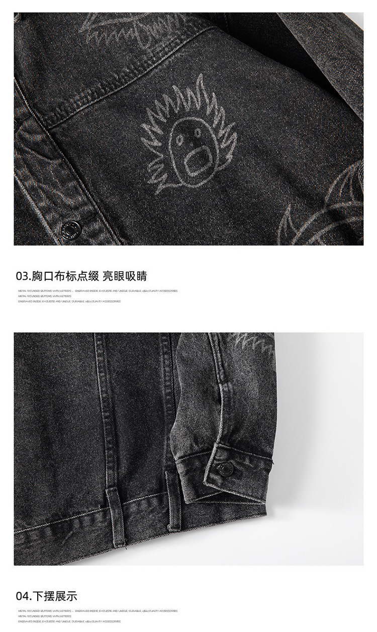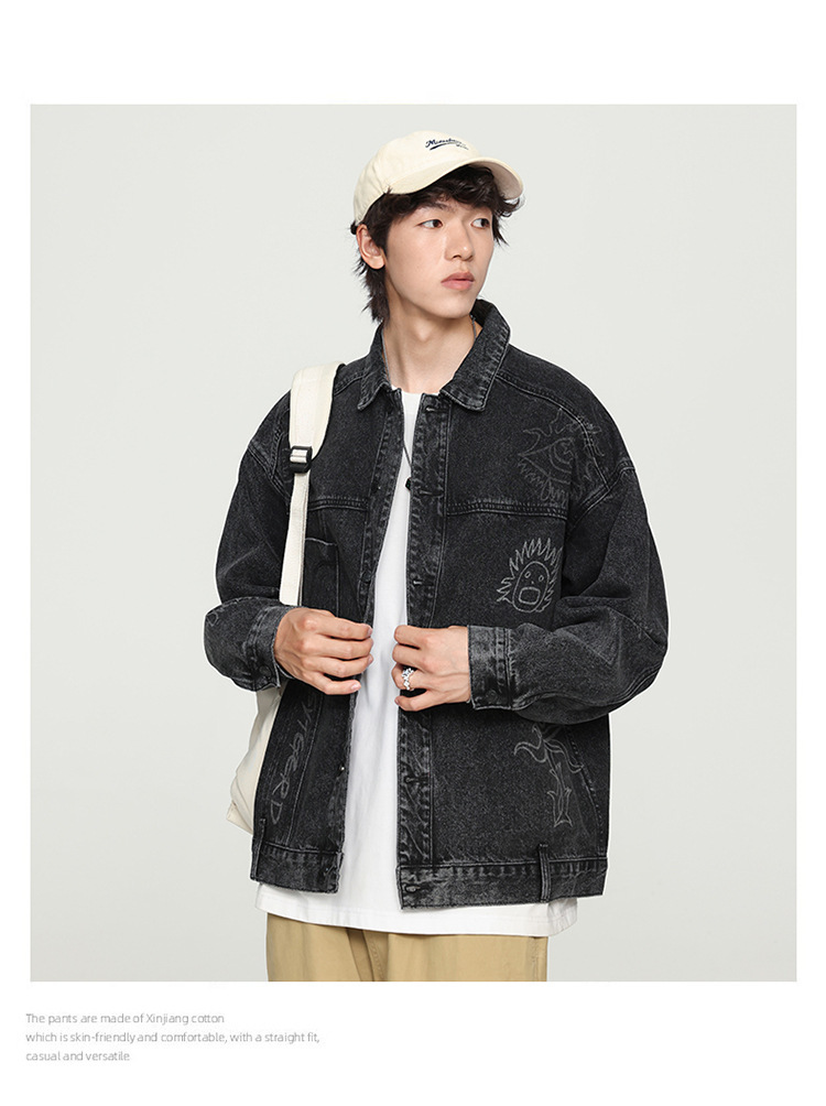 유럽 역 봄 새로운 미국 하이 스트리트 작업복 재킷 고급 빈티지 프린트 패션 브랜드 데님 코트 남성