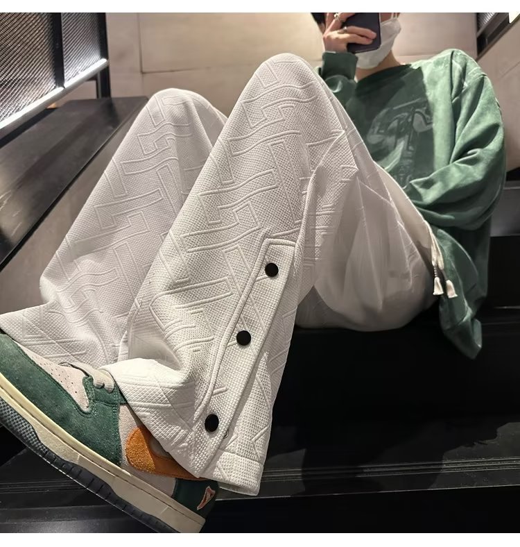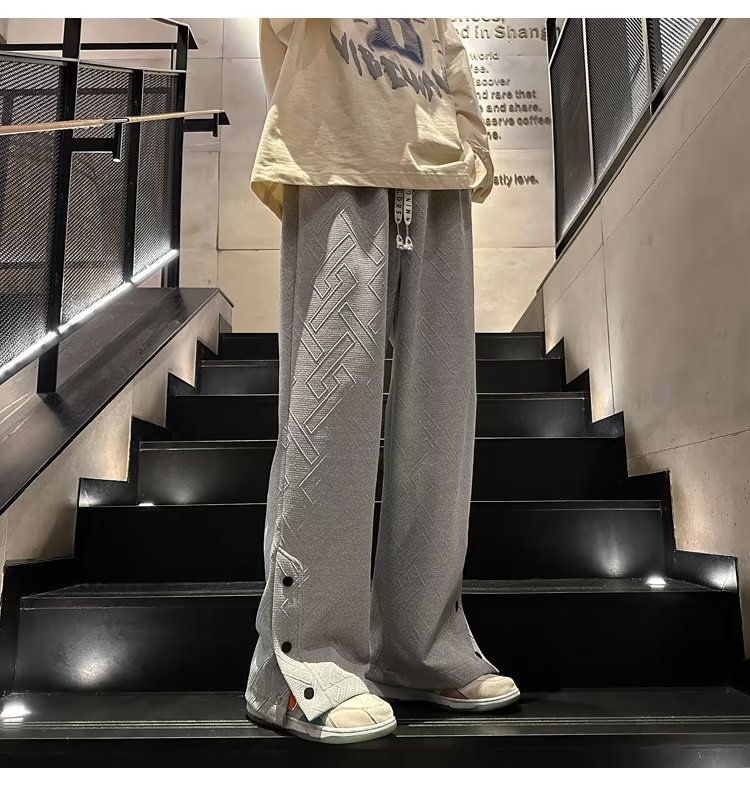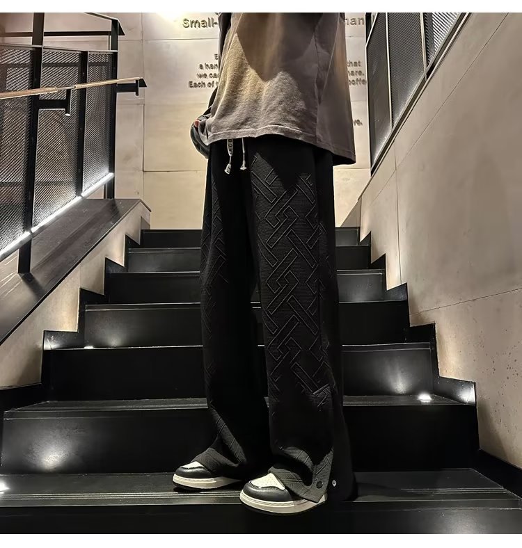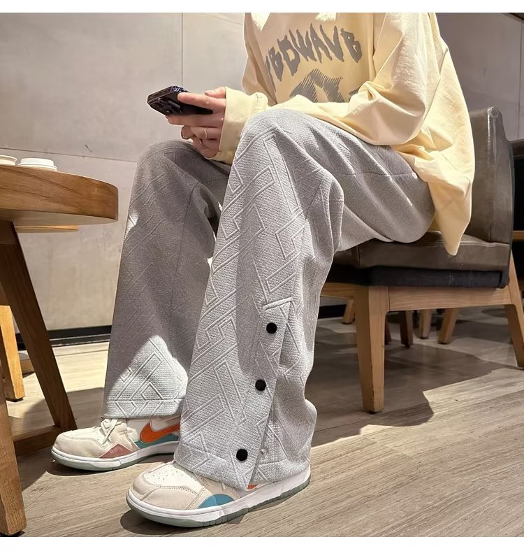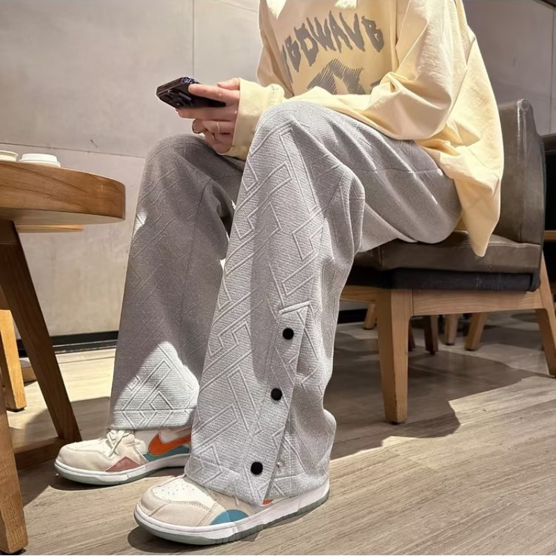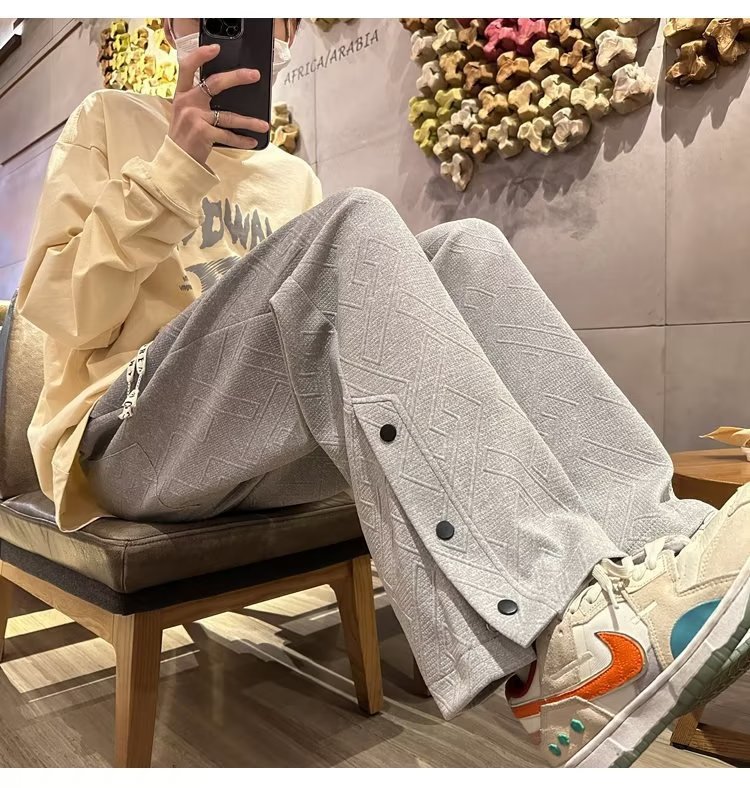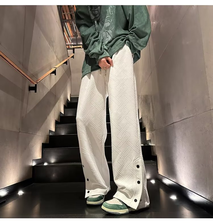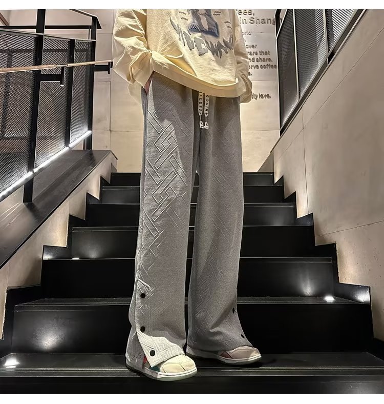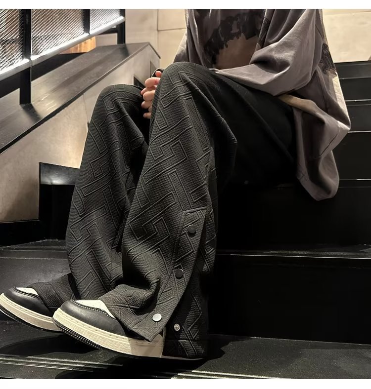 排扣提花拖地卫裤男新款胖子大码加厚港风潮牌宽松直筒阔腿休闲裤