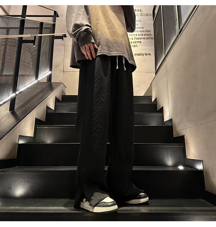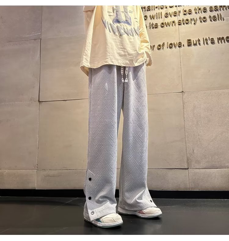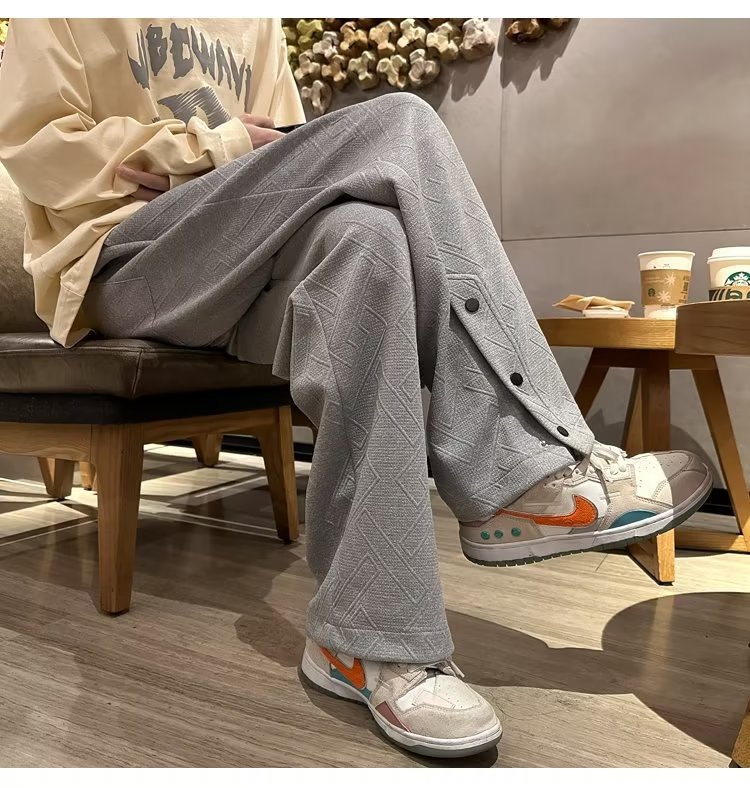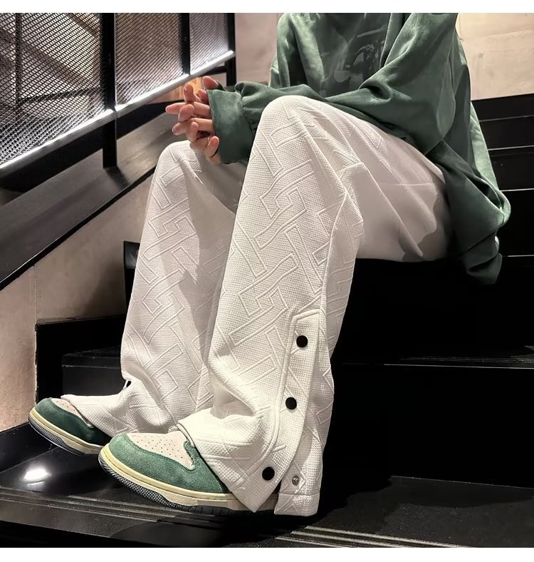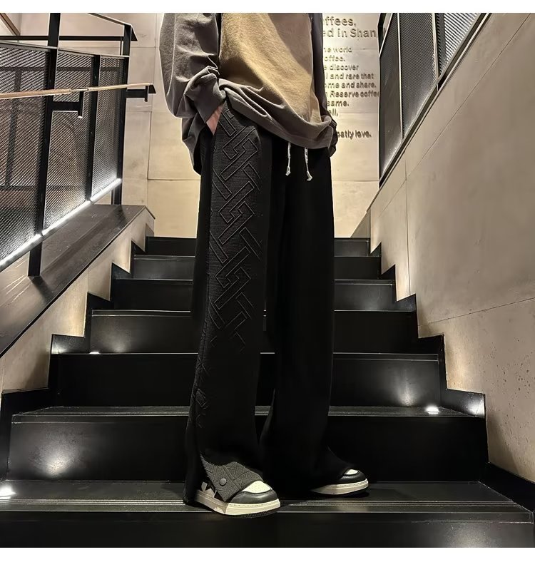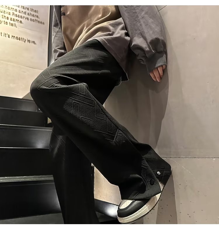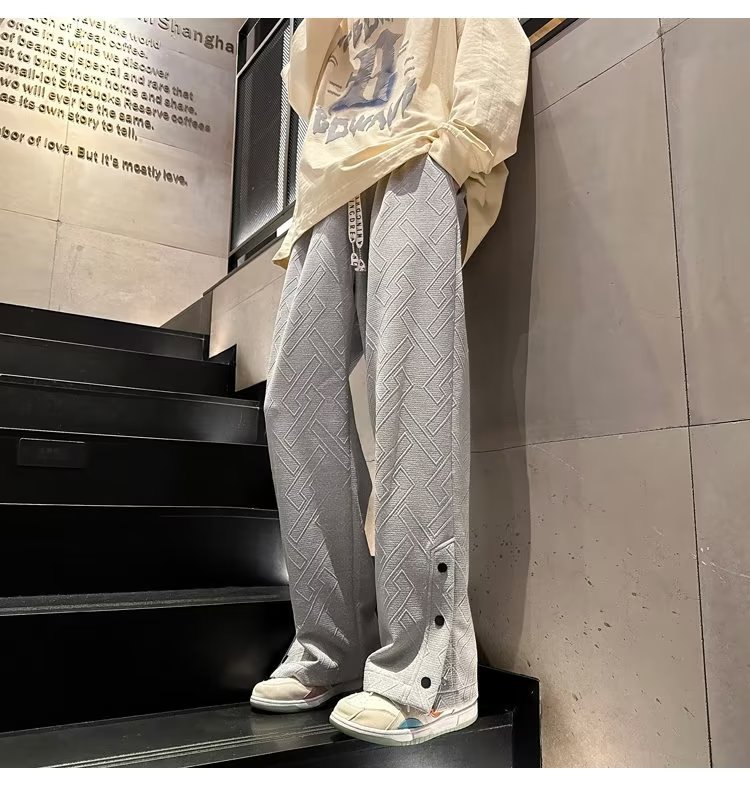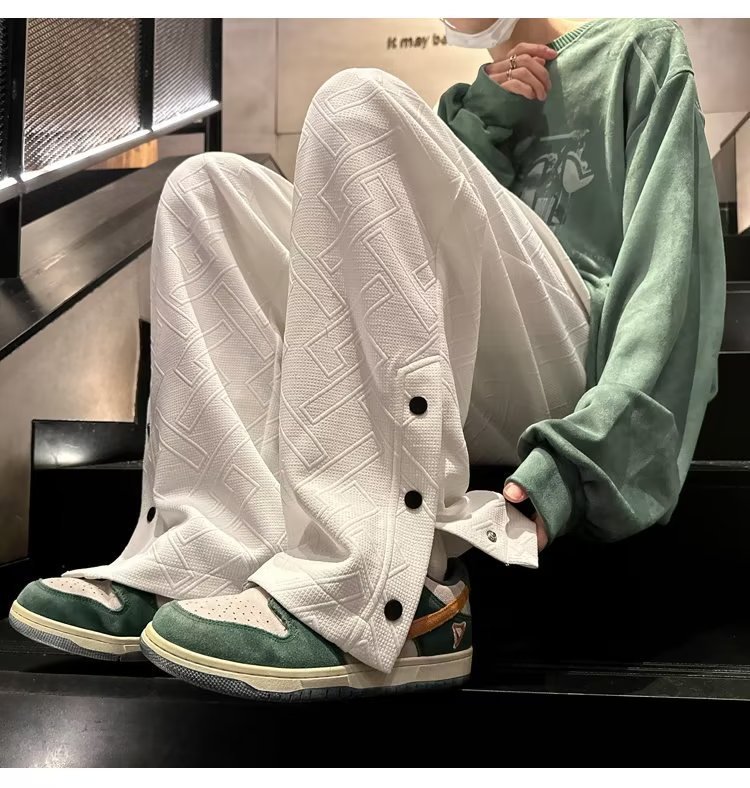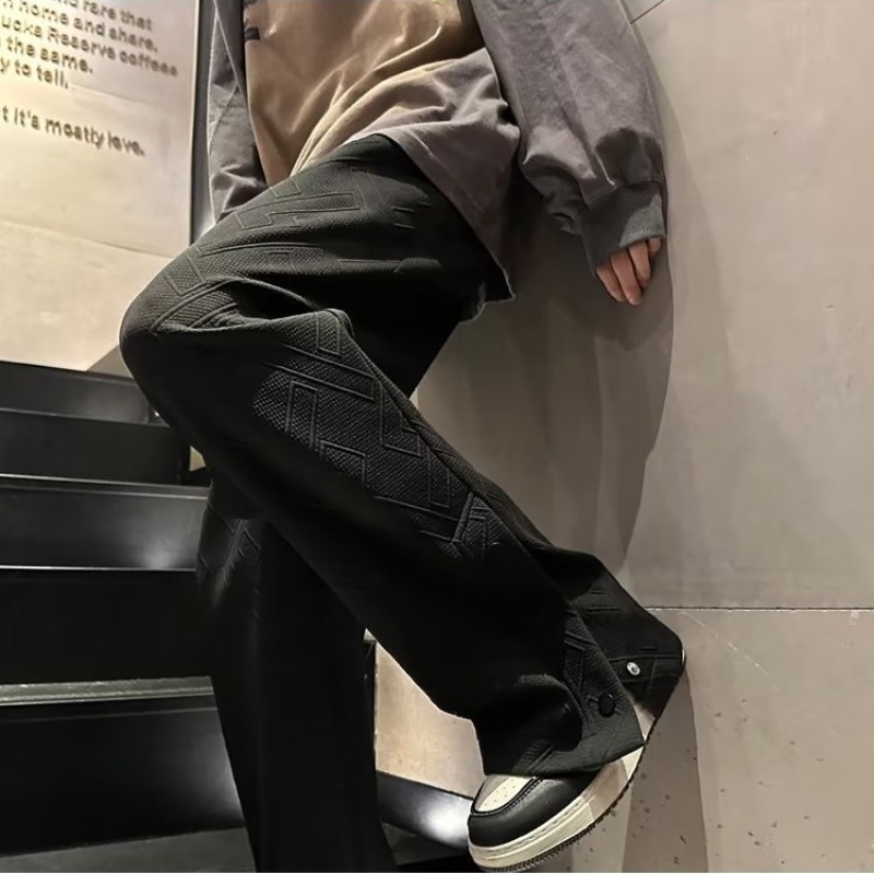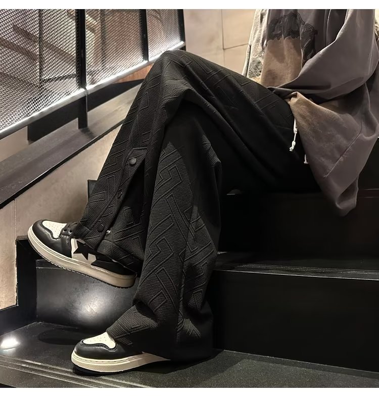 排扣提花拖地卫裤男新款胖子大码加厚港风潮牌宽松直筒阔腿休闲裤