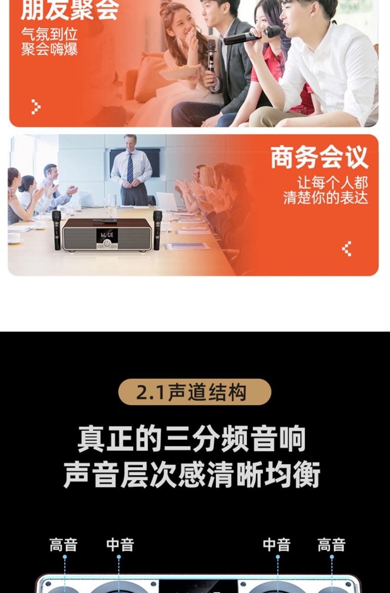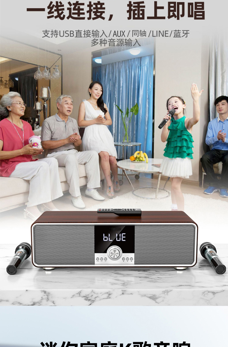 홈 시어터 노래방 올인원 스피커 고출력 중저음 스피커(마이크 포함) TV 사운드 마스터 스피커