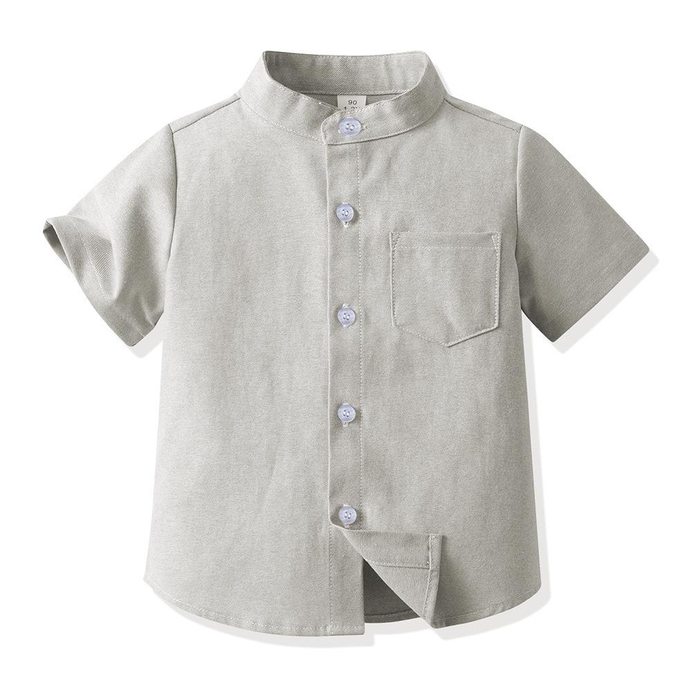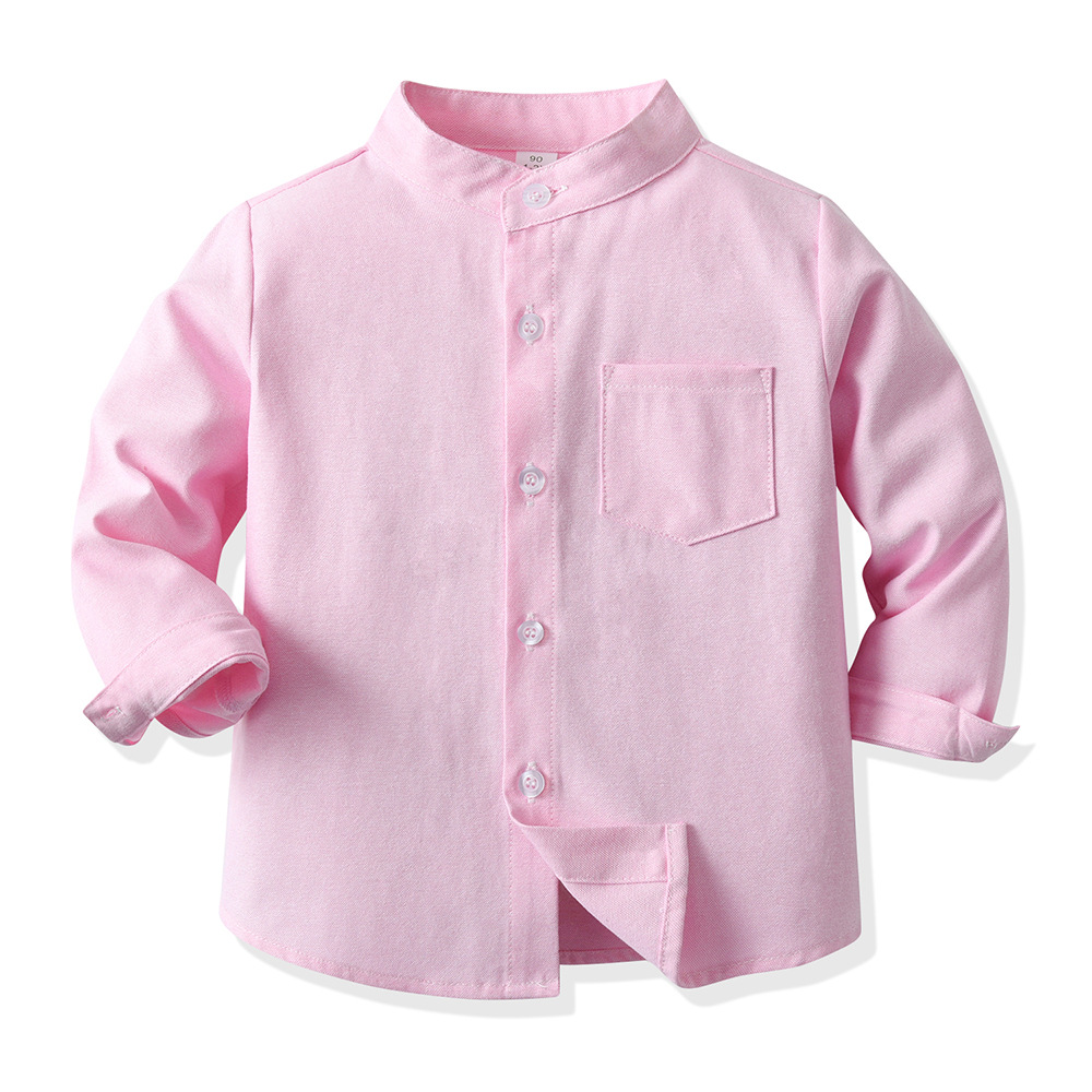 크로스보더 아동복, 아동 캔디 컬러 셔츠, 봄 남아 셔츠, 중대형 아동 스탠드 칼라 남아 셔츠, 긴팔스토어 가기