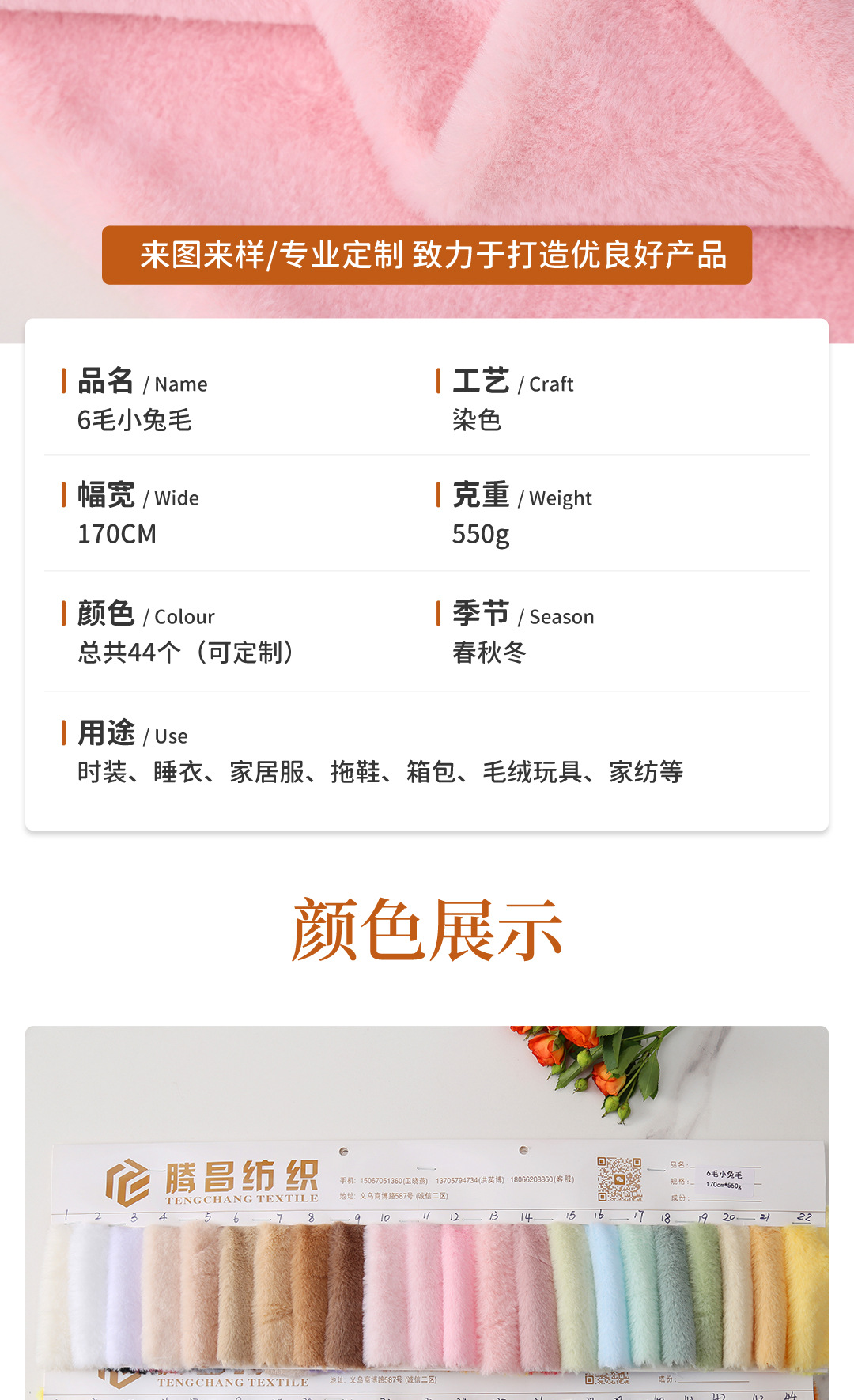 6mm 토끼털 550g 옥토끼털 모조 토끼털 긴털 원단 여성용 슬리퍼 장난감 폴리에스터 벨벳