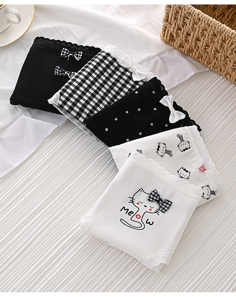 여성 레이스 가장자리 중간 허리 통기성 속옷 여성의 일본 귀여운 달콤한 야옹 소녀 학생 삼각형 반바지 머리