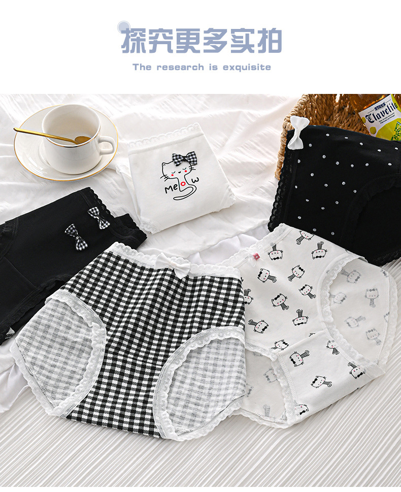 여성 레이스 가장자리 중간 허리 통기성 속옷 여성의 일본 귀여운 달콤한 야옹 소녀 학생 삼각형 반바지 머리스토어 가기