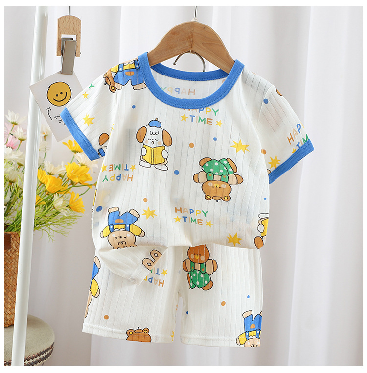 2024 여름 새로운 아동복 어린이 반팔 반바지 세트 소년 소녀 아기 티셔츠 소년 소녀 면화 도매스토어 가기