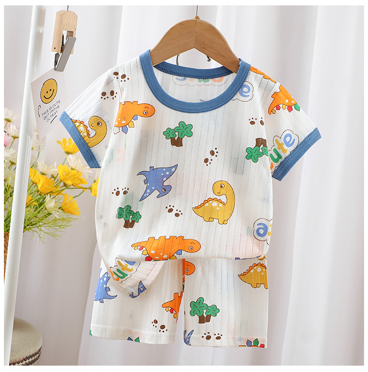 2024 여름 새로운 아동복 어린이 반팔 반바지 세트 소년 소녀 아기 티셔츠 소년 소녀 면화 도매