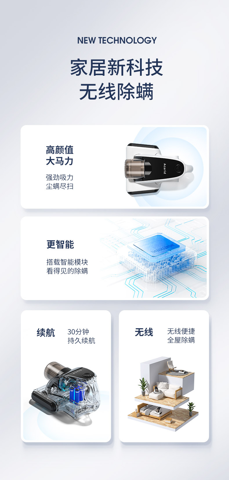 국경 간 휴대용 무선 안티 진드기 가정용 대형 흡입 침대 소파 스마트 진공 청소기 작은 안티 진드기 기계
