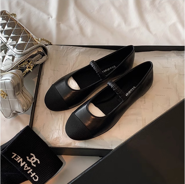 포도 엄마의 같은 스타일 골드 매들린 ~ 세련된 컬러 슬리밍 탄성 싱글 레이어 신발과 작은 둥근 발가락 여성용 정품 가죽스토어 가기