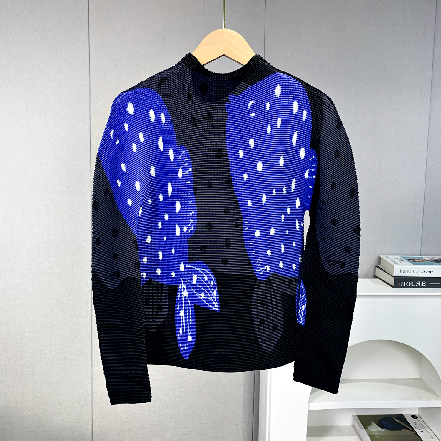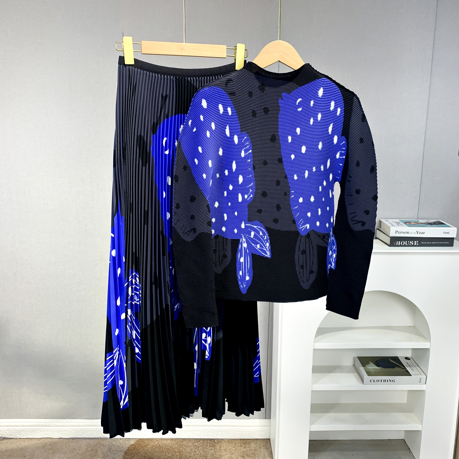 유럽과 미국의 국경 2 피스 여성 Sanzhai 새로운 하이 엔드 패션 프린트 플리츠 탑 통근 스타일 스커트 세트