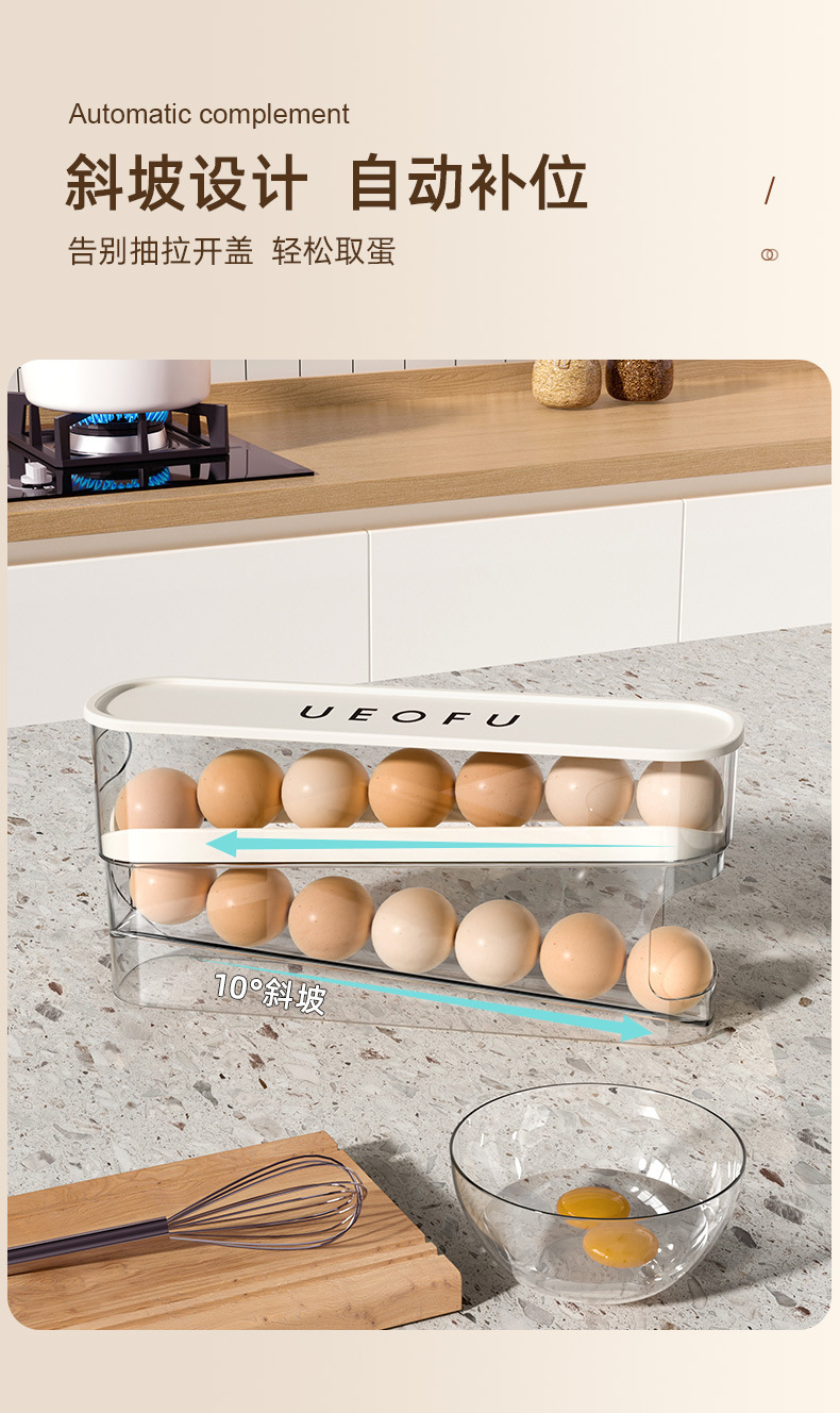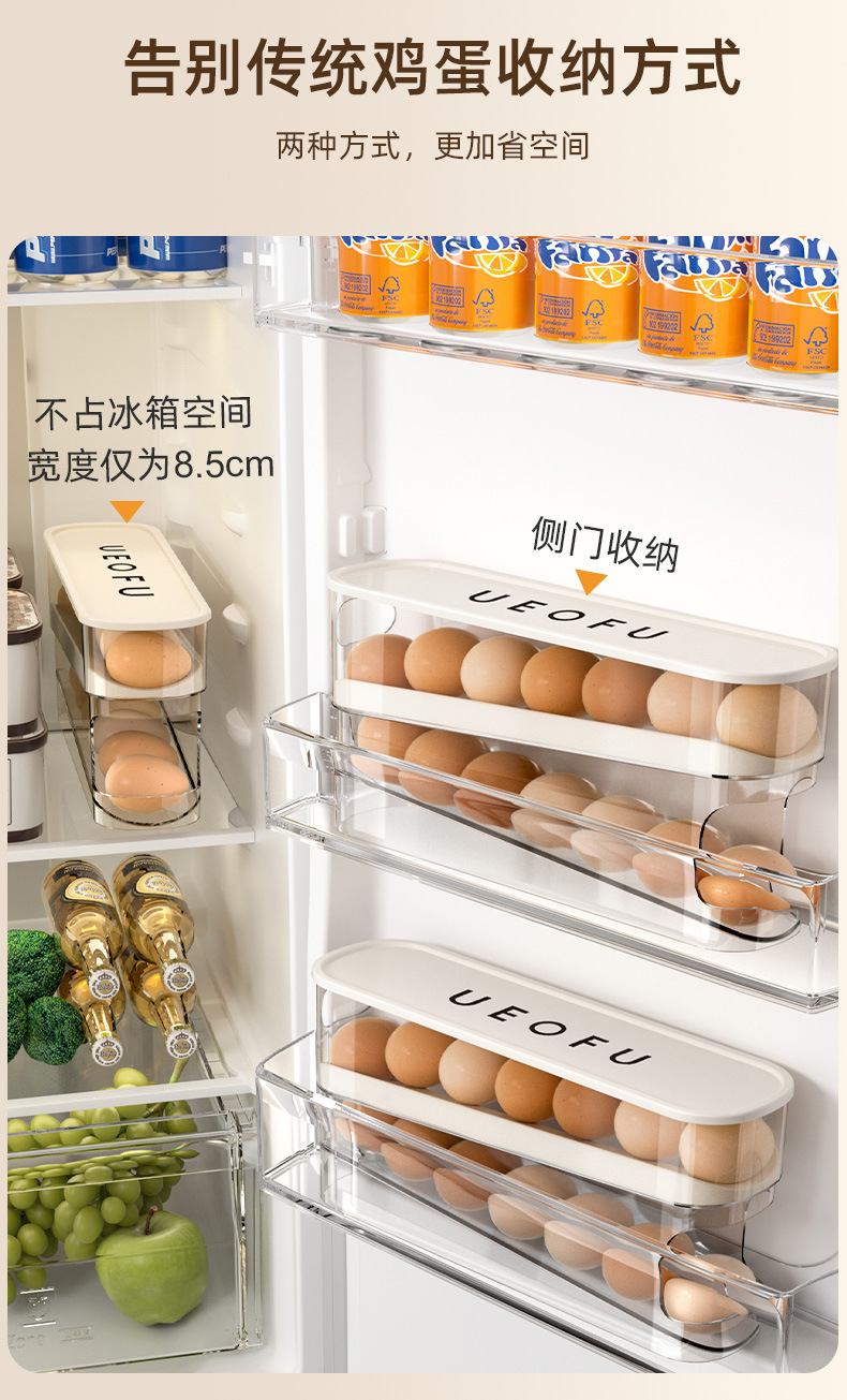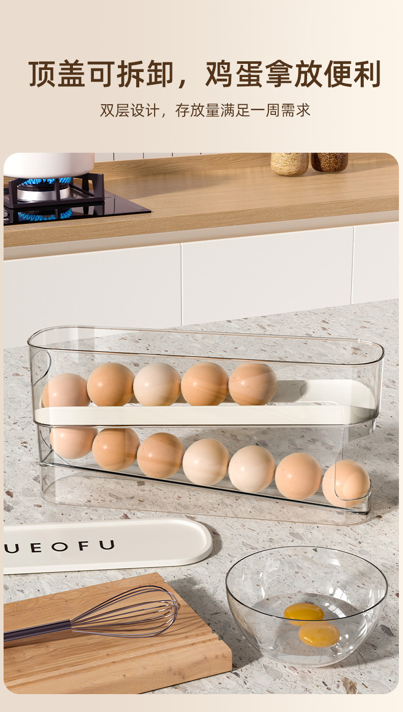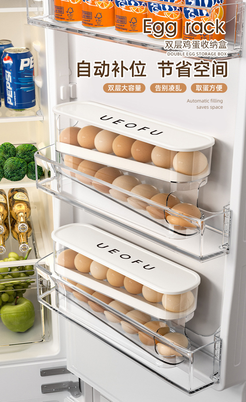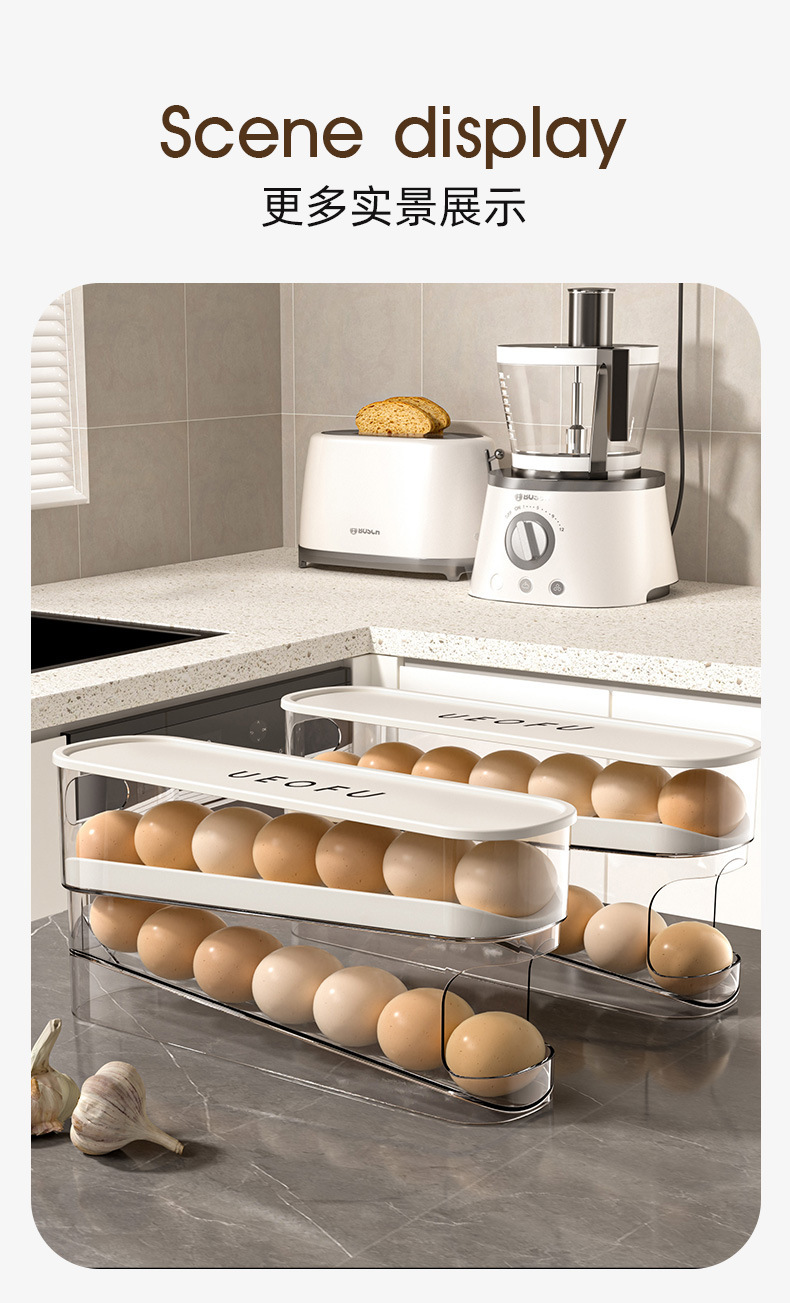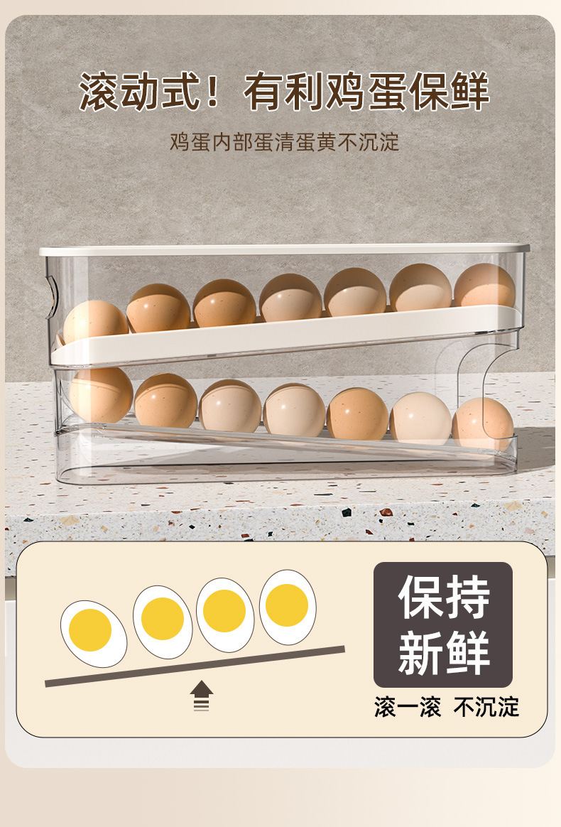가정용 슬라이드 계란 상자 냉장고 사이드 도어 특수 자동 계란 롤러 주방 테이블 가을 계란 저장 상자