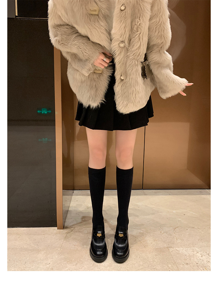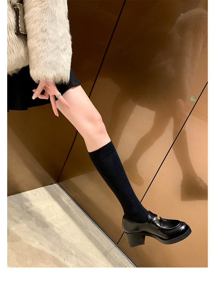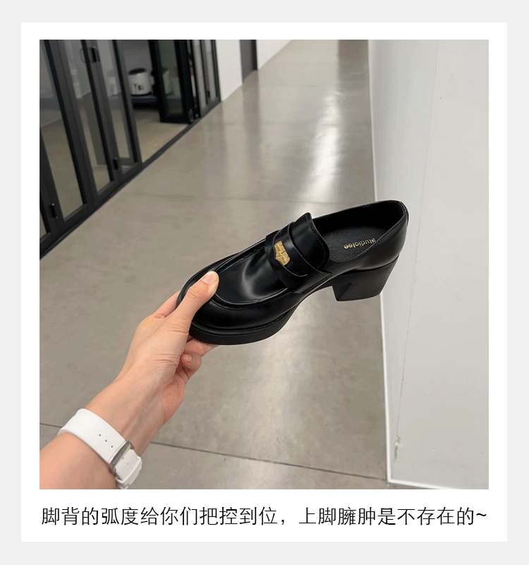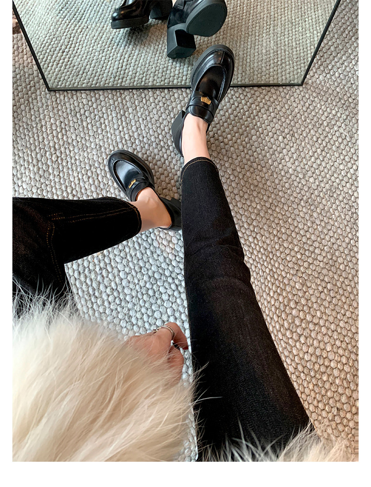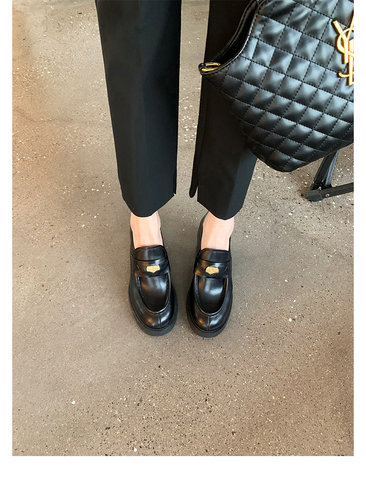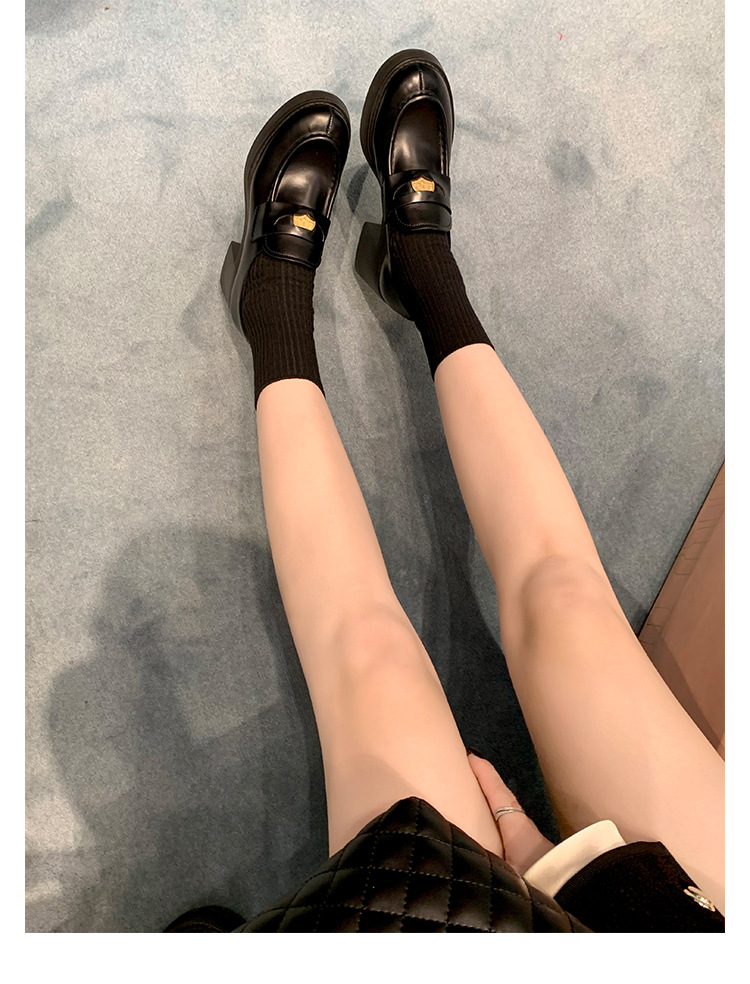 홍콩 정품 가죽 로퍼 여성의 봄과 가을 두꺼운 힐 하이힐 신발 빈티지 블랙 영국 스타일 작은 가죽 신발