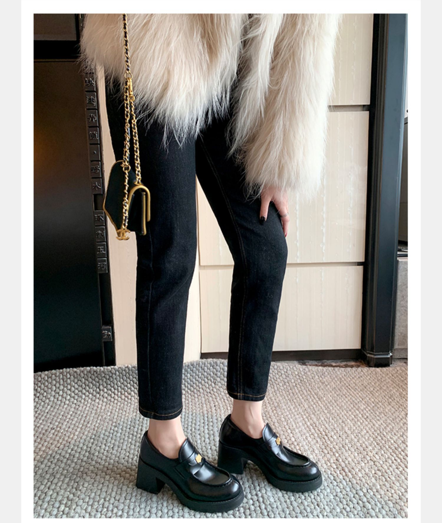 홍콩 정품 가죽 로퍼 여성의 봄과 가을 두꺼운 힐 하이힐 신발 빈티지 블랙 영국 스타일 작은 가죽 신발스토어 가기