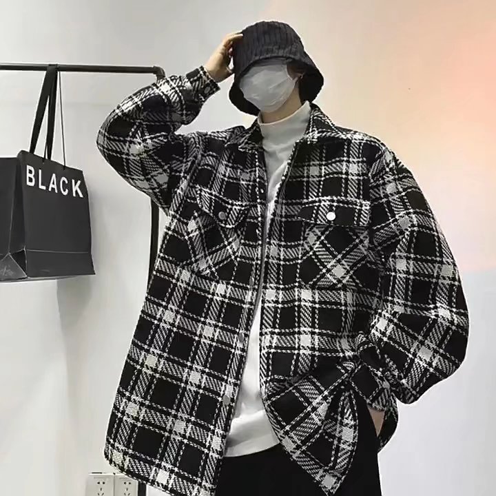샤넬 스타일 하운드 코트 남성용 옷깃 가을과 겨울 다재다능한 느슨한 외부 착용 긴 소매 한국식 탑 캐주얼 재킷스토어 가기