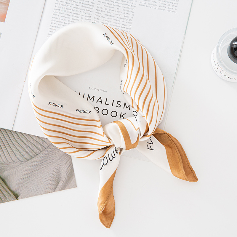 70 평방 스카프 여성의 간단한 올 매치 스트라이프 인쇄 인공 실크 스카프 얇은 장식 작은 스카프 선 스크린 스카프