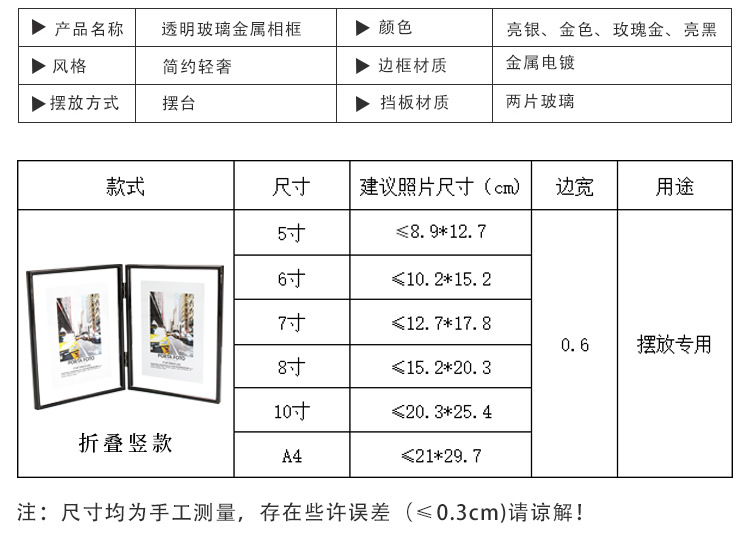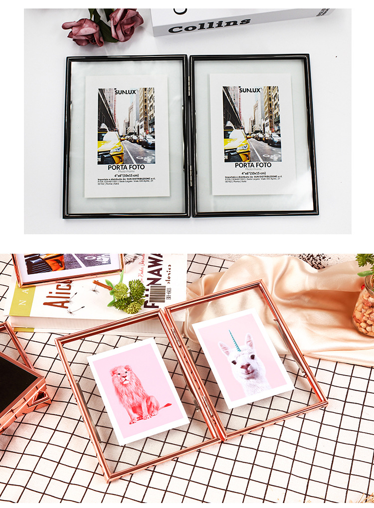 심플한 양면 투명 액자 스탠드 6inch a 60% off 연결형 아크릴 금속 유리 장식품 삼중 공중부양스토어 가기