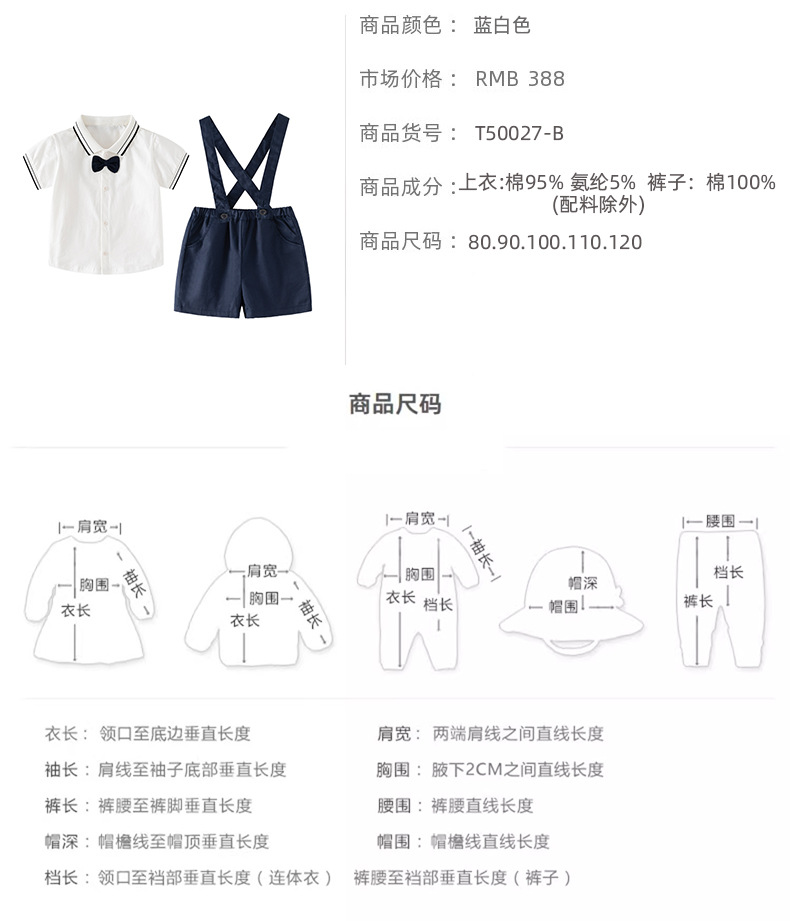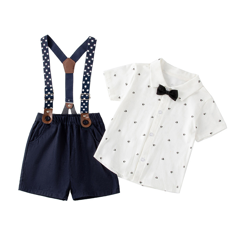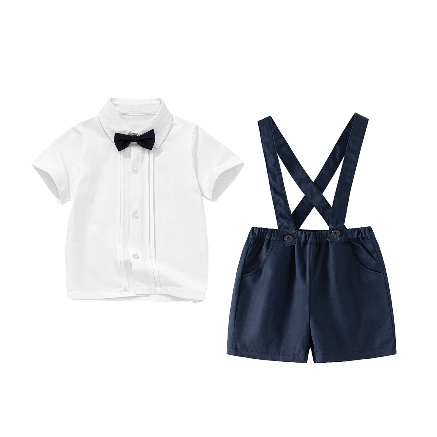 • 짧은 소매 세트 [흰색과 파란색 신사 서스펜더 세트]]