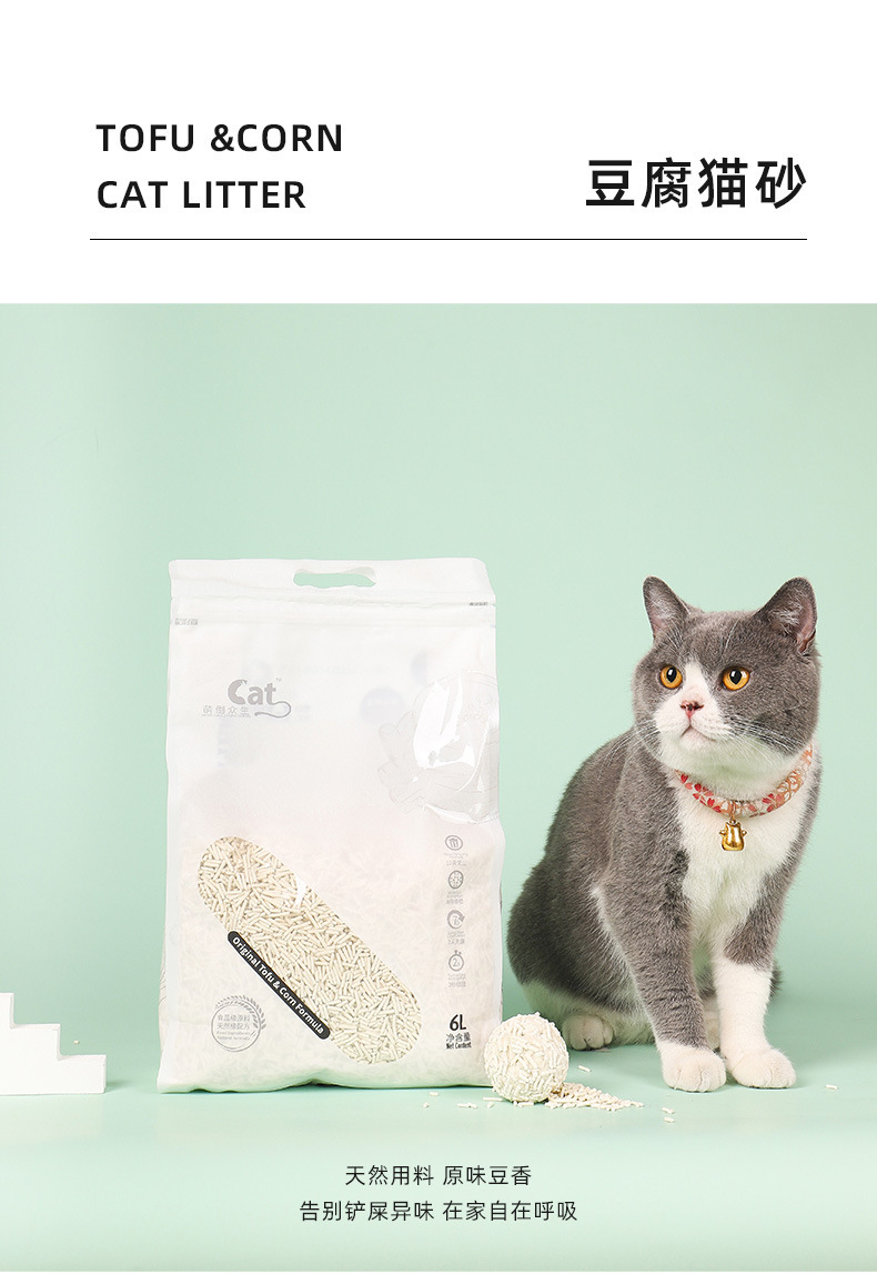 원래 두부 고양이 쓰레기 천연 두부 고양이 쓰레기 미세 입자 탈취제 먼지가없는 가용성 물 고양이 애완 동물 용품 도매