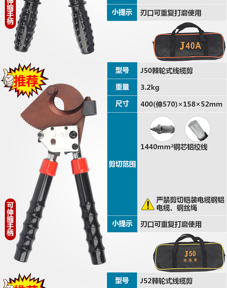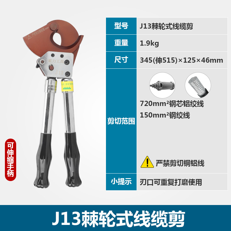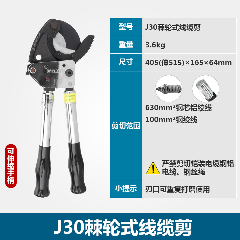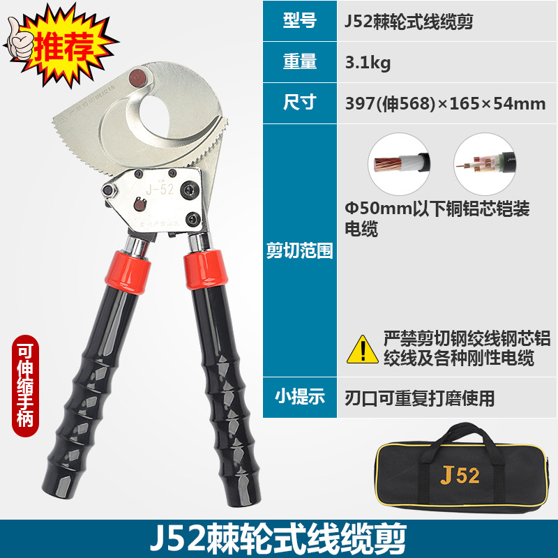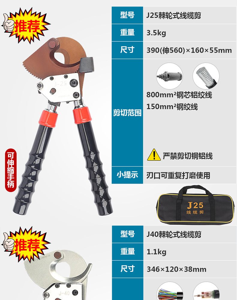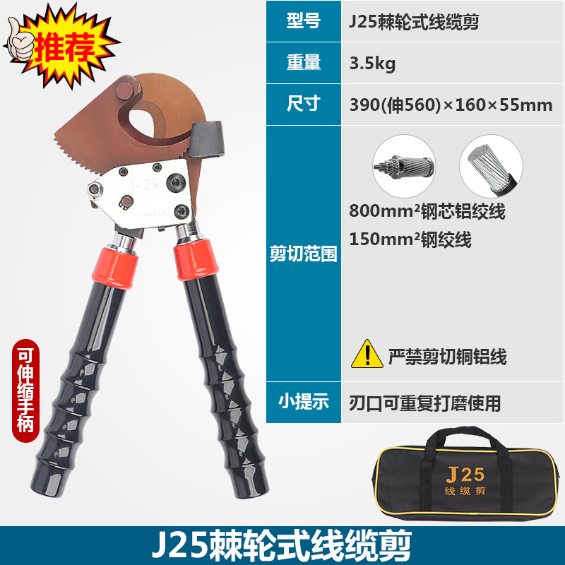 케이블 커터 래칫 케이블 커터 기어 가위 J40J 520000 에너지 구리-알루미늄 장갑 강철 코어 케이블 커터
