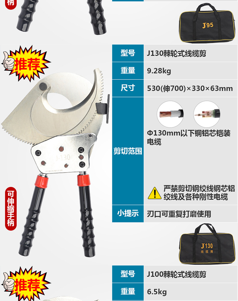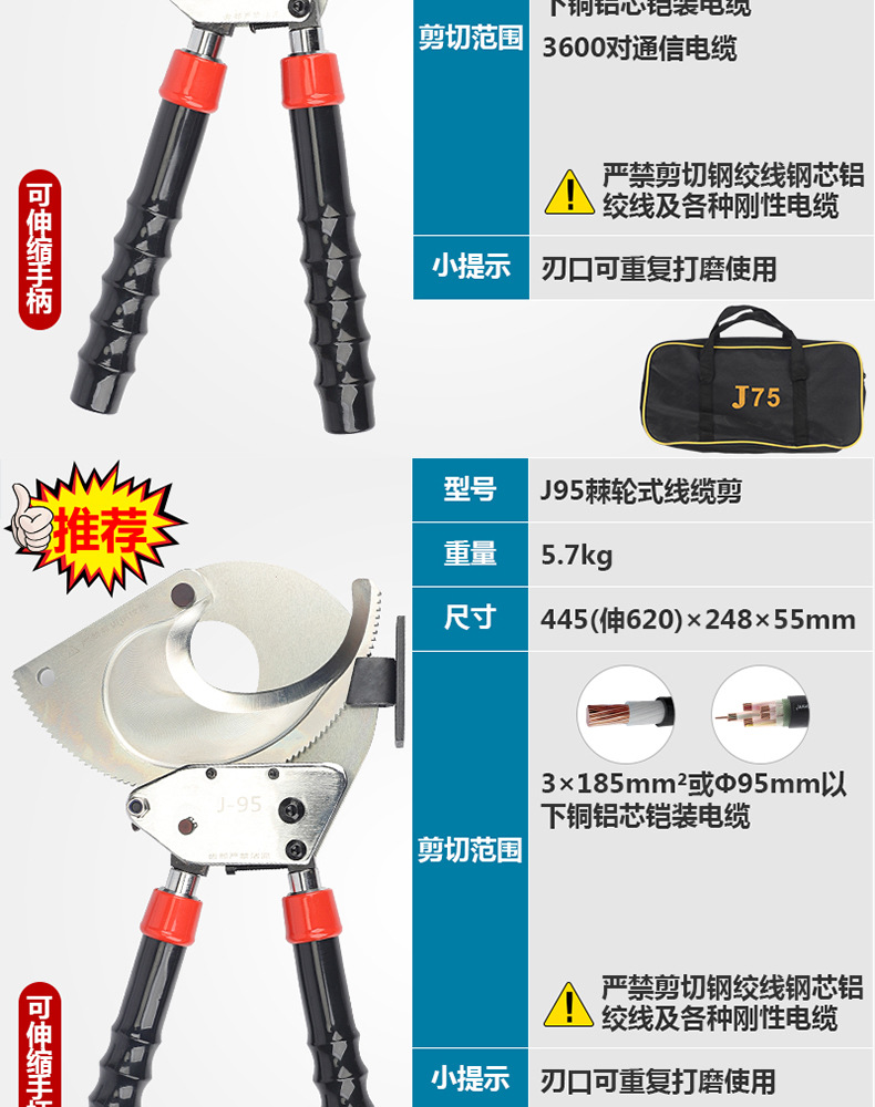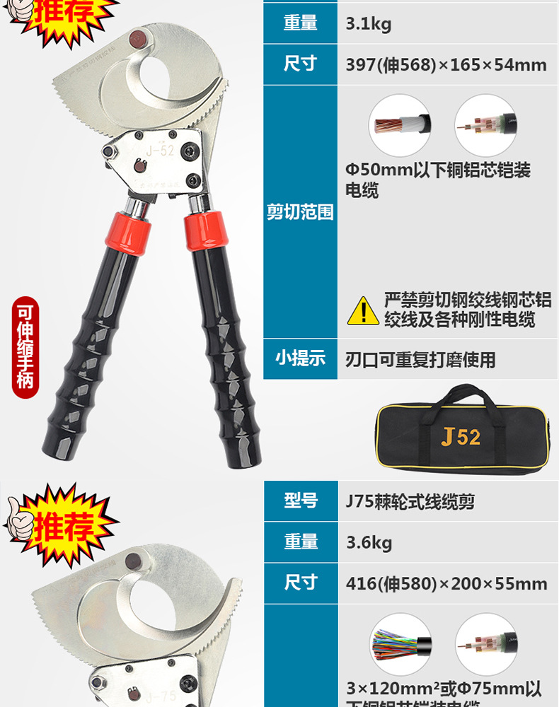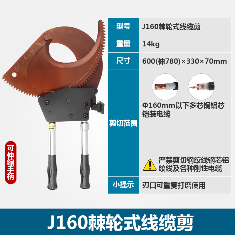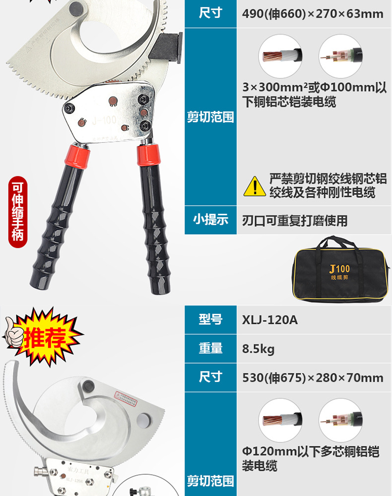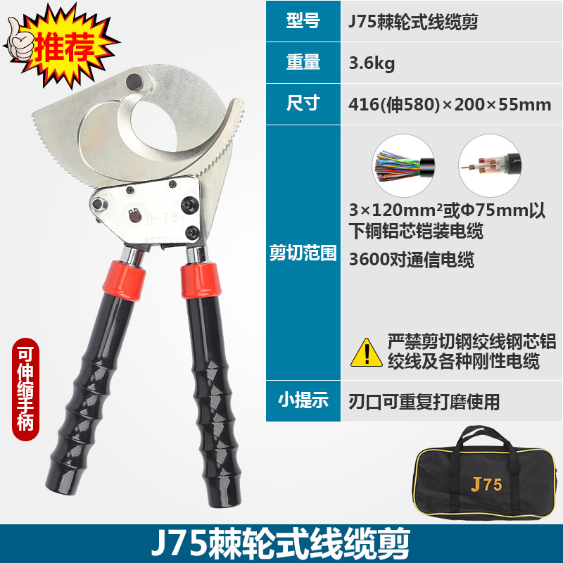케이블 커터 래칫 케이블 커터 기어 가위 J40J 520000 에너지 구리-알루미늄 장갑 강철 코어 케이블 커터