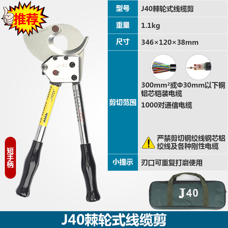 케이블 커터 래칫 케이블 커터 기어 가위 J40J 520000 에너지 구리-알루미늄 장갑 강철 코어 케이블 커터스토어 가기