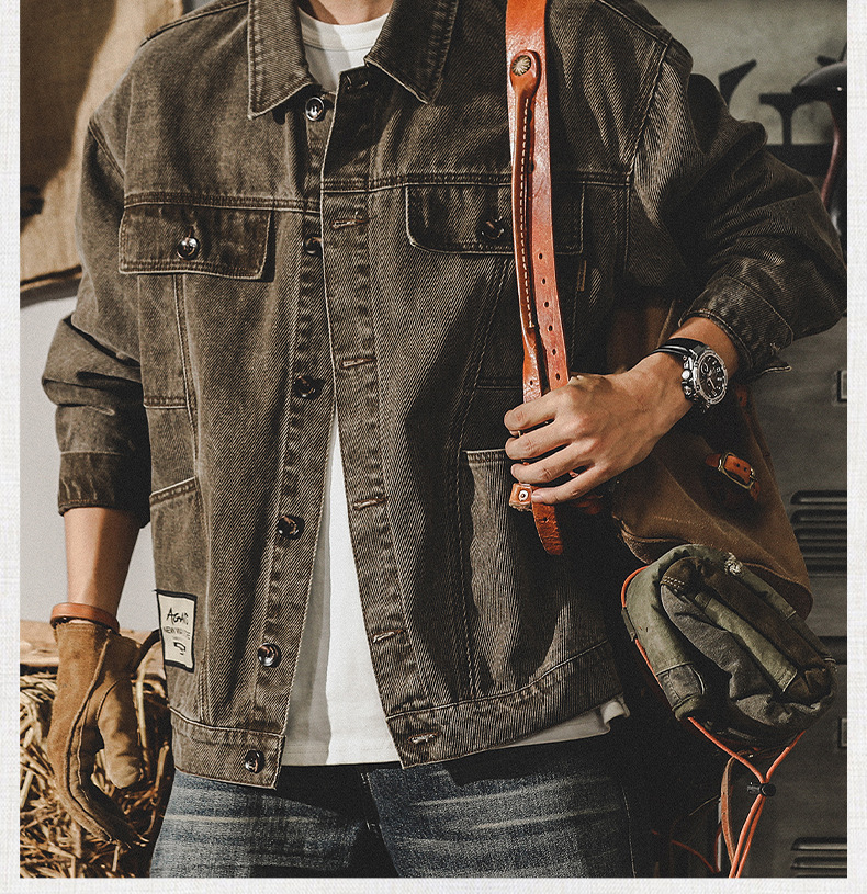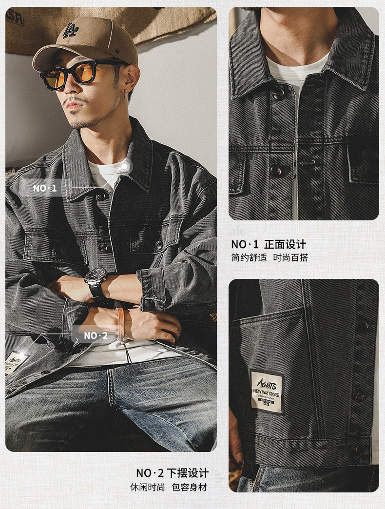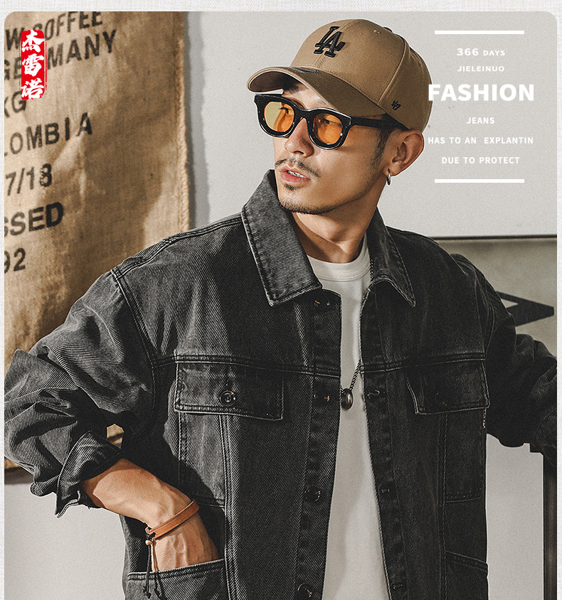 제레노 미국 복고풍 데님 코트 남자 봄 느슨한 잘 생긴 신장 면화 고민 작업복 재킷 남성스토어 가기