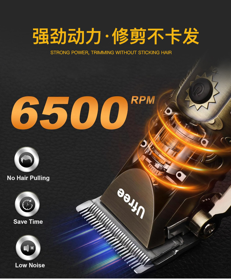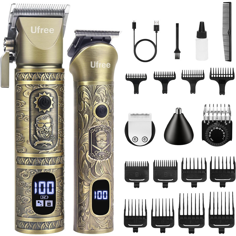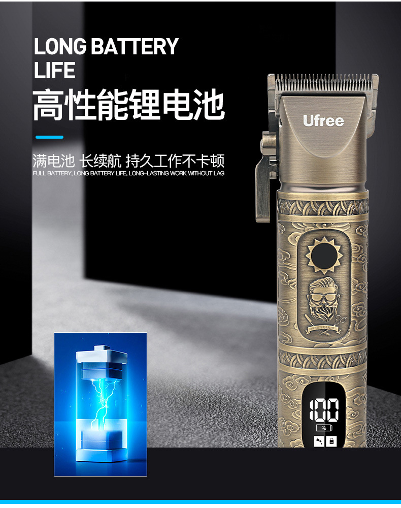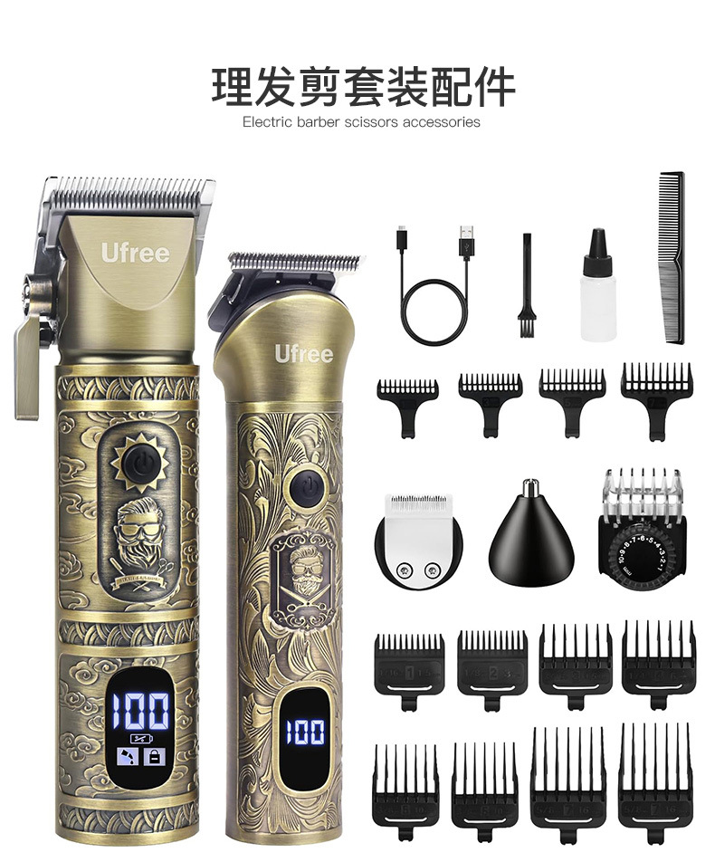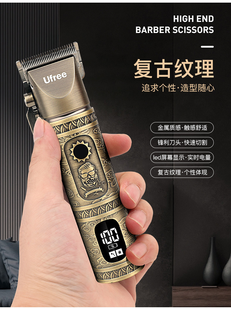 국경 간 가정용 전기 헤어 클리퍼 세트 전기 클리퍼 빈티지 오일 헤드 충전 조각 청동 전기 클리퍼 금속