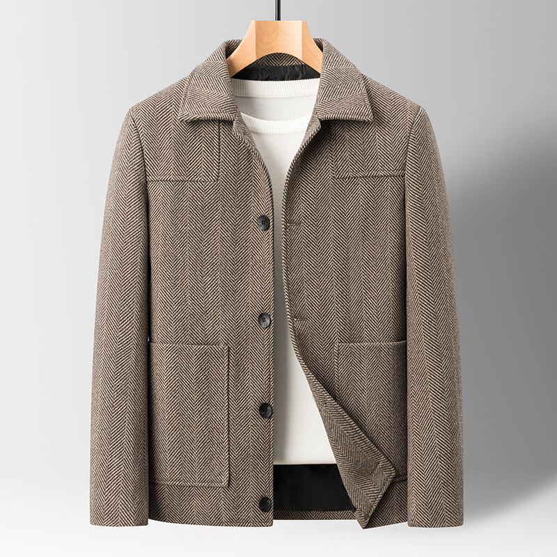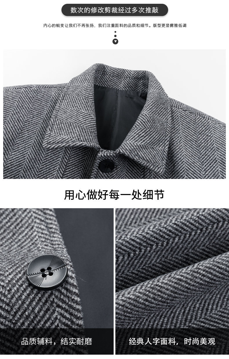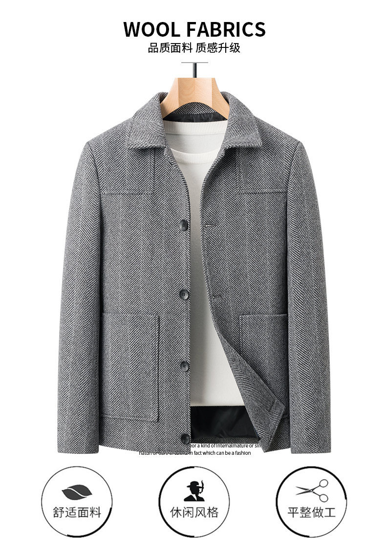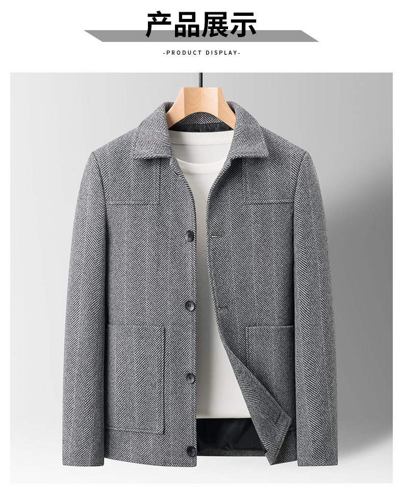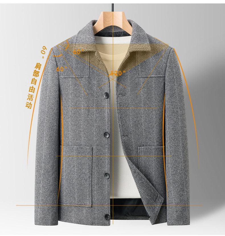 젊은 및 중년 남성을위한 봄 2024 코트 슬림 핏 옷깃 모직 재킷 3 차원 패치 백 비즈니스 캐주얼 작업복 재킷