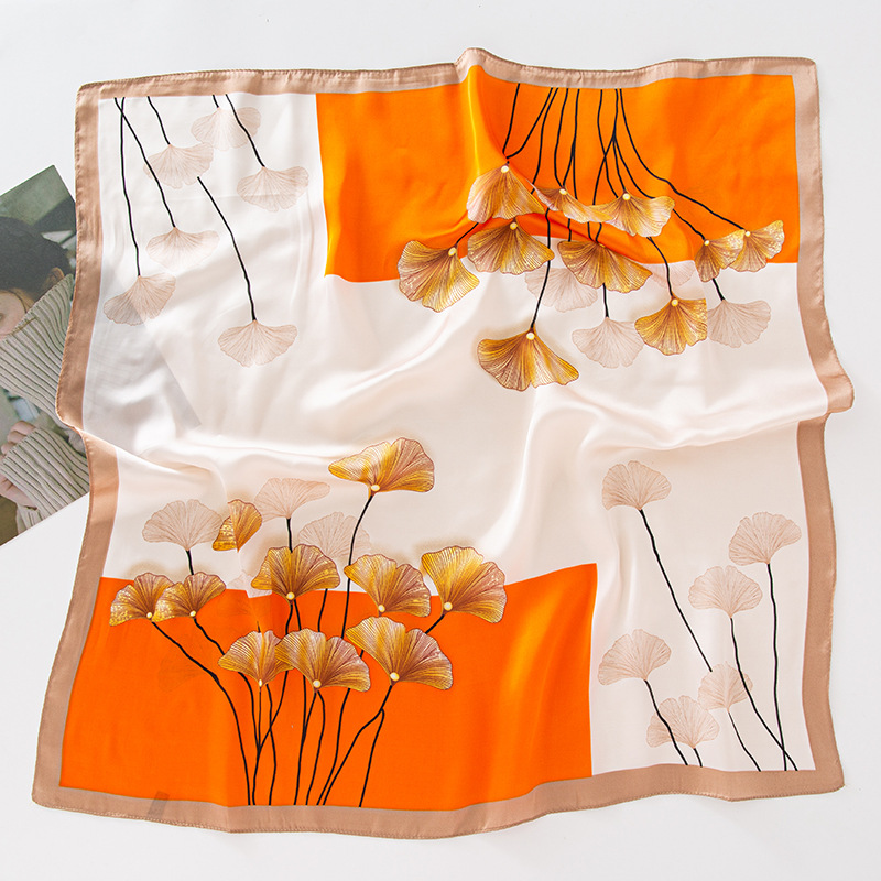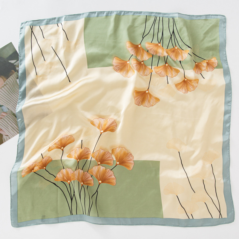 우아한 은행 나무 잎 스카프 여성의 얇은 작은 스카프 70 작은 사각형 스카프 어머니 스카프 봄과 여름 태양 보호 스카프스토어 가기
