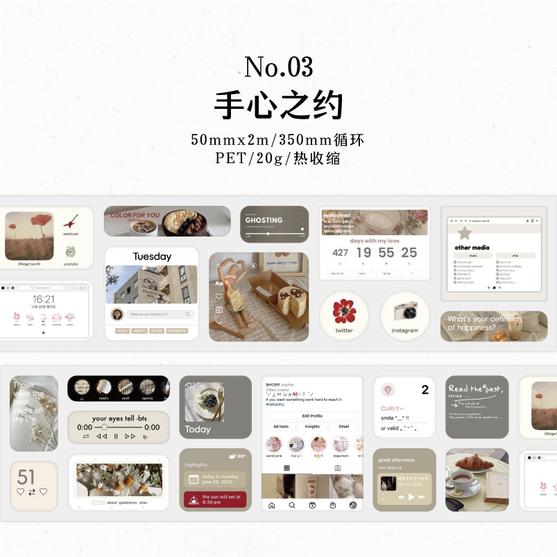 황혼의 애완 동물 테이프 별이 빛나는 하늘 사랑 시리즈 손 계정 소재 장식 콜라주 바닥 스티커 노트 6스토어 가기