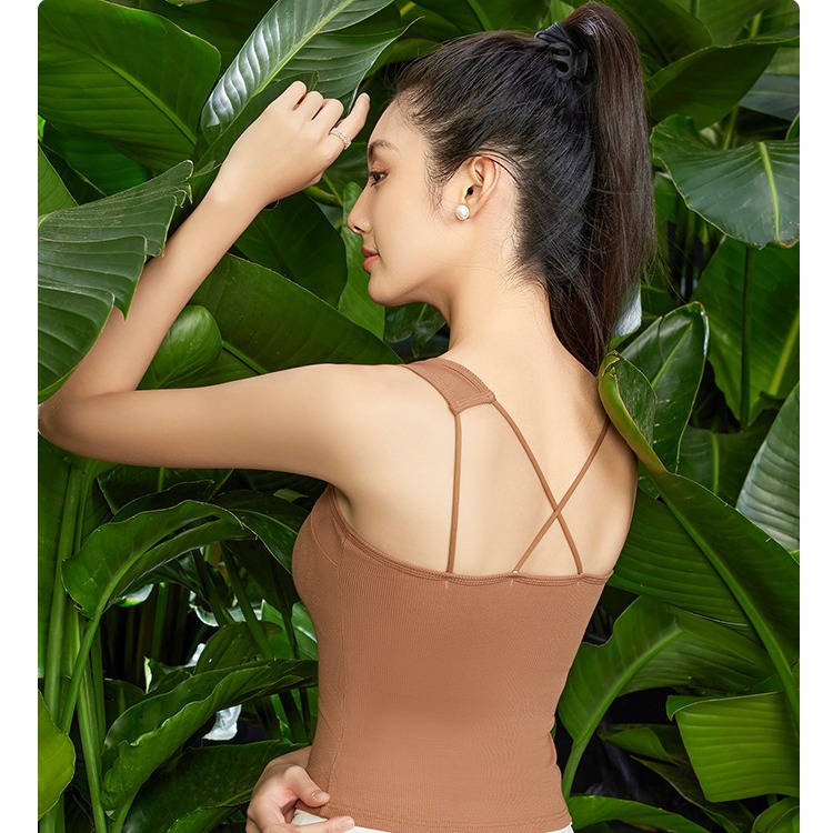 가슴 패드가있는 카미 솔 여성 바닥 요가 스포츠 조끼 내복 여름 섹시한 뷰티 백 겉옷 포장 가슴스토어 가기