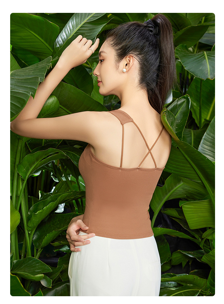 가슴 패드가있는 카미 솔 여성 바닥 요가 스포츠 조끼 내복 여름 섹시한 뷰티 백 겉옷 포장 가슴