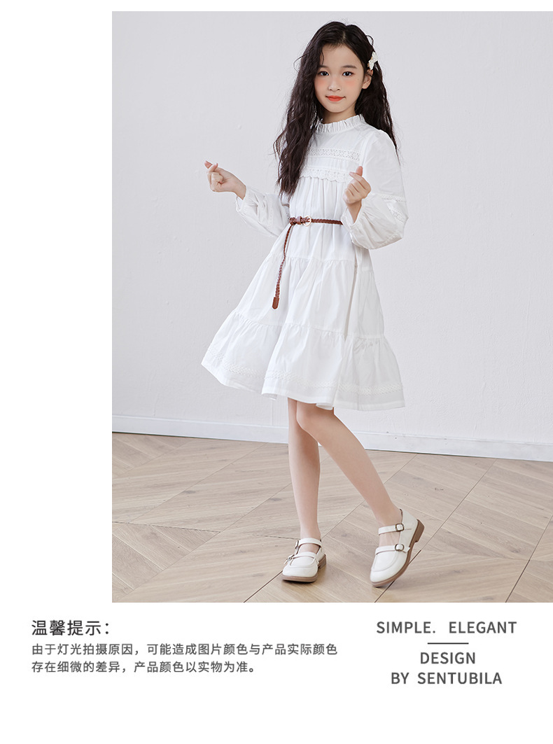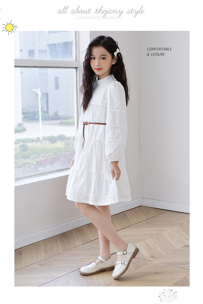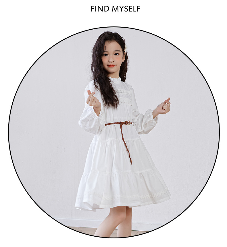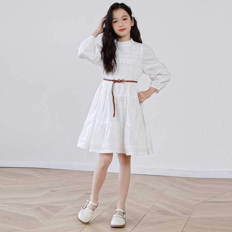 아동 의류 새로운 도착 소녀 달콤한 솔리드 컬러 레이스 긴 소매 드레스 어린이 면화 한국어 버전 자수 드레스