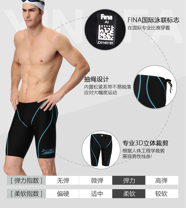 Yingfa 5 점 수영 트렁크 남성 전문 훈련 무릎 길이 수영 트렁크 방수 염소 저항성 빠른 건조 경쟁 수영 조합 인증