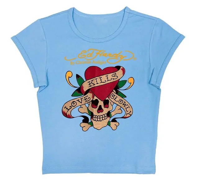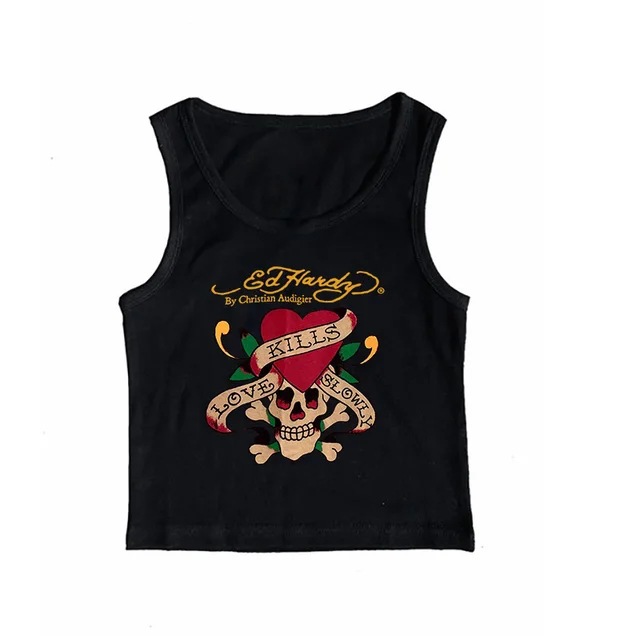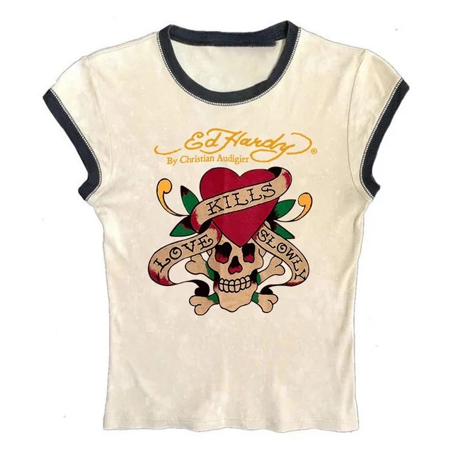 해외 무역 국경 여성 티셔츠 복고풍 그래픽 인쇄 슬림 고스 탑 여름 캐주얼 스트리트 펑크 티셔츠