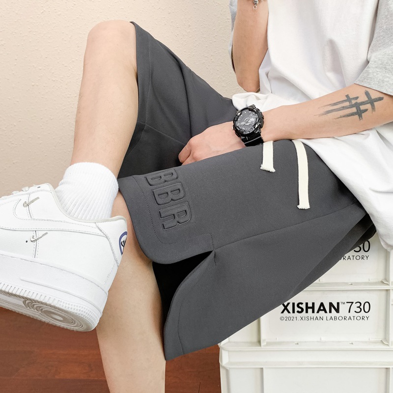 반바지 남성 여름 패션 브랜드 아이스 실크 얇은 통기성 스틸 프린트 스트레이트 팬츠 남성 여름 캐주얼 크롭 팬츠스토어 가기
