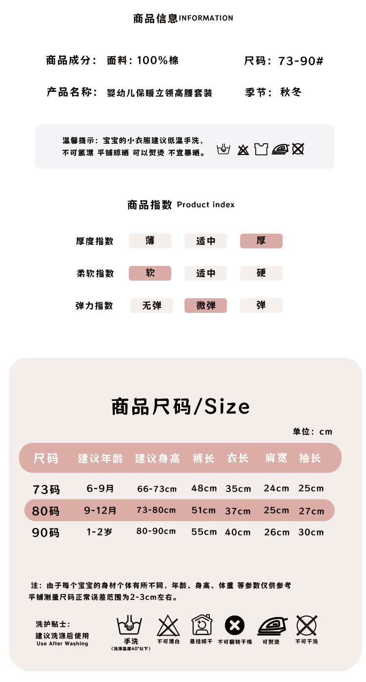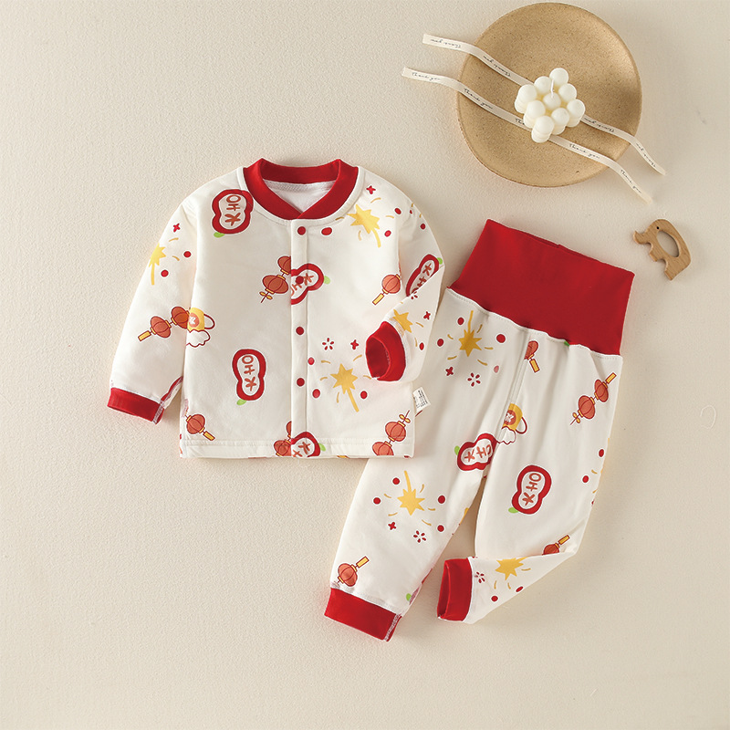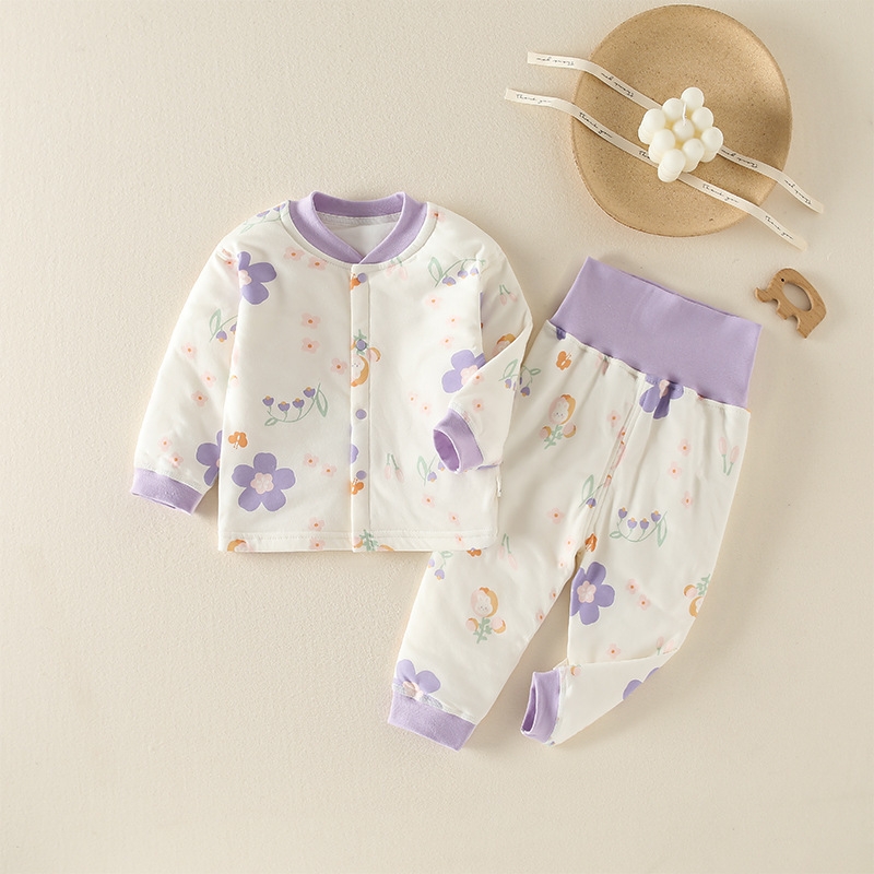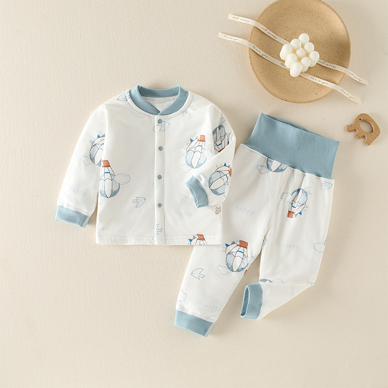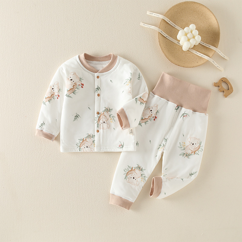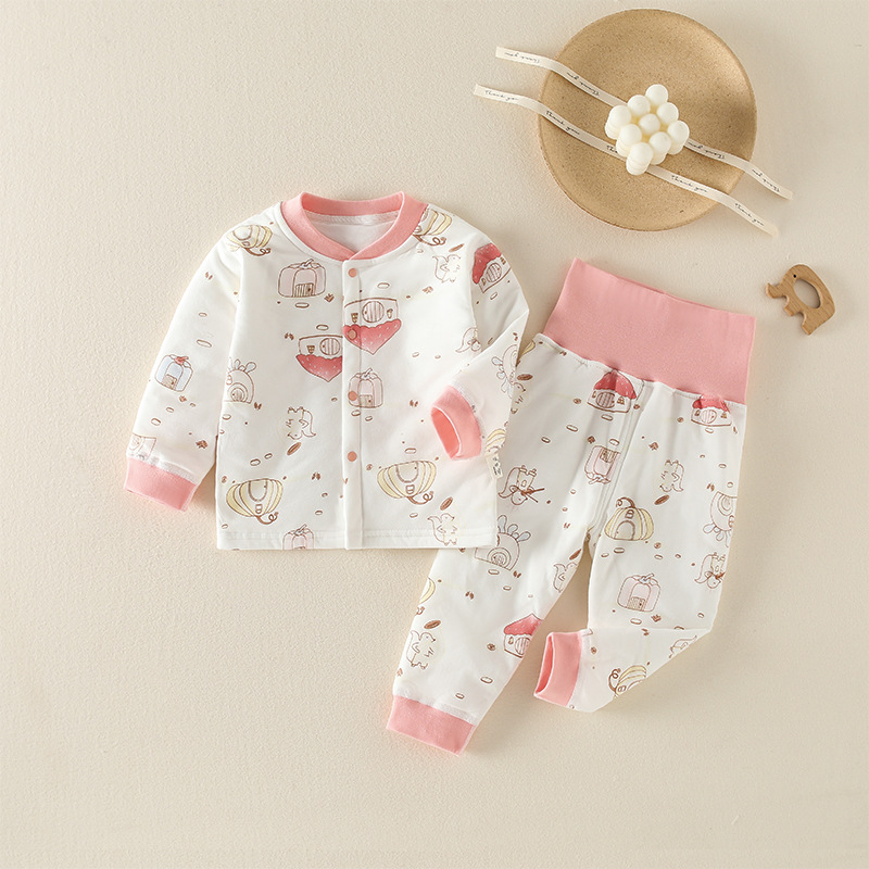 유아복 60g 누빔 보온 순면 속옷 남녀 아기 분리형 하이웨이스트 배 보호 세트 만화스토어 가기